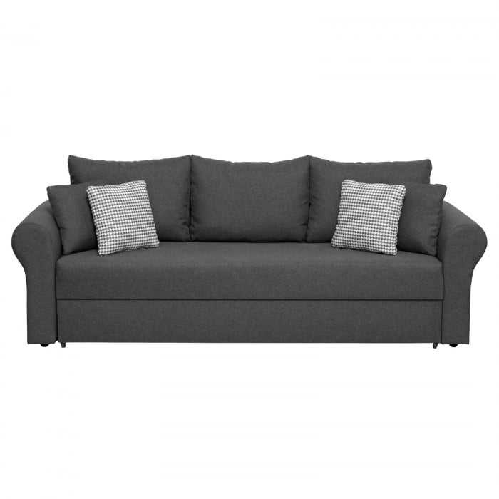 Suprafata de dormit: Lungime: 190 cm Latime: 130 cm Dimensiuni canapea (gabarit): Lungime: 235 cm Adancime: 90 cm Inaltime totala: 75 cm Inaltime sezut: 45 cm Numar de locuri recomandat: 3 Materiale: Lemn…