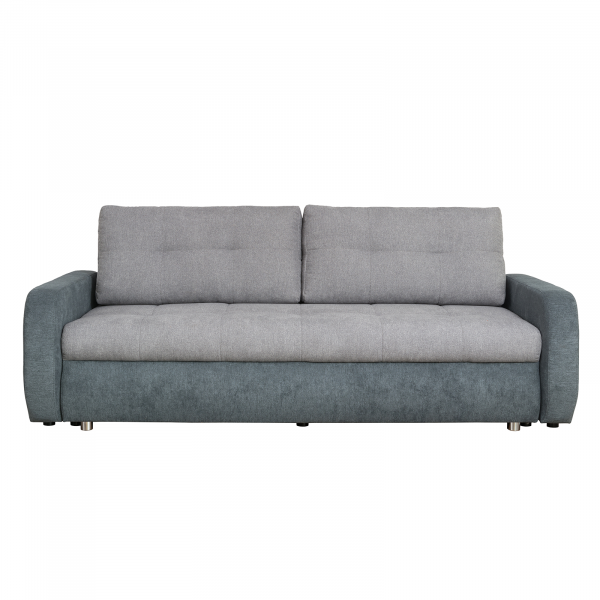 Canapea SIGMA extensibila, 3 locuri, cu arcuri si lada depozitare, gri inchis + gri deschis, 222x105x91 cm