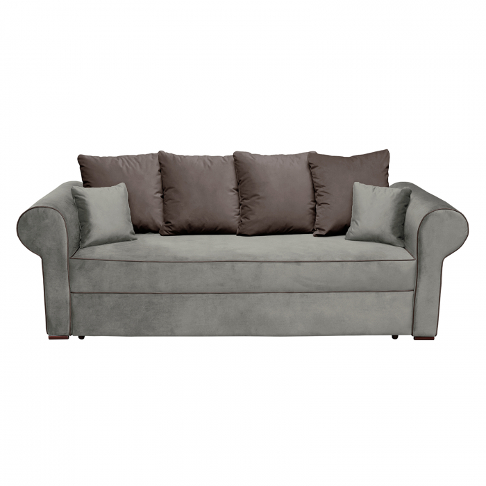 Canapea SOFIA extensibila, 3 locuri, cu arcuri si lada depozitare, bej + maro, 251x105x77 cm