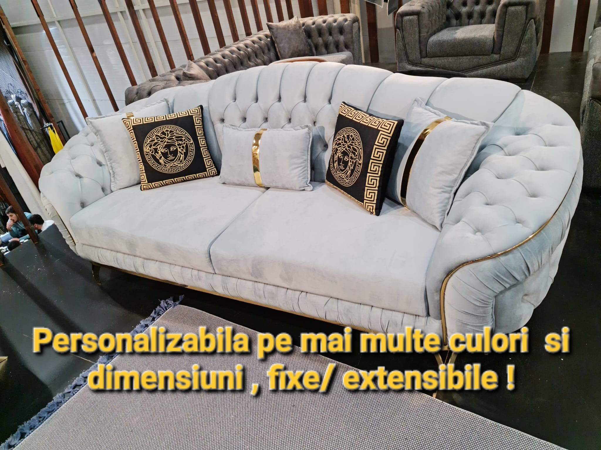Finisajele șic de culoare aurie într-un stil glamour fac ca piesa de mobilier să se potrivească practic în orice stil. Tapițeria aspectuoasa și moale la atingere fac canapeaua confortabila si garantează condițiile perfecte pentru relaxare. Material: Catifea , Culoare: turcoaz , cu insertii aurii Dimensiuni: 220 cm x 75 cm x 90 cm Acesta se…