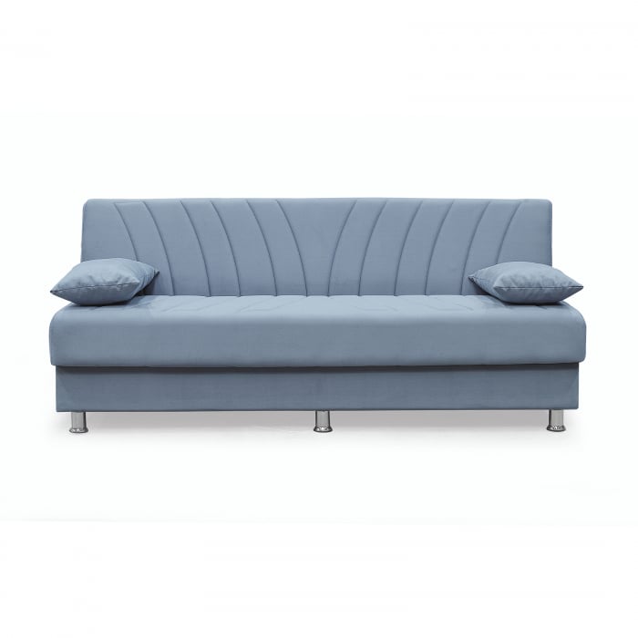 Suprafata de dormit: Lungime: 190 cm Latime: 102 cm Dimensiuni canapea (gabarit): Lungime: 190 cm Adancime totala: 82 cm Inaltime totala: 83 cm Inaltime sezut: 45 cm Numar de locuri recomandat: 3 Materiale: Perne…