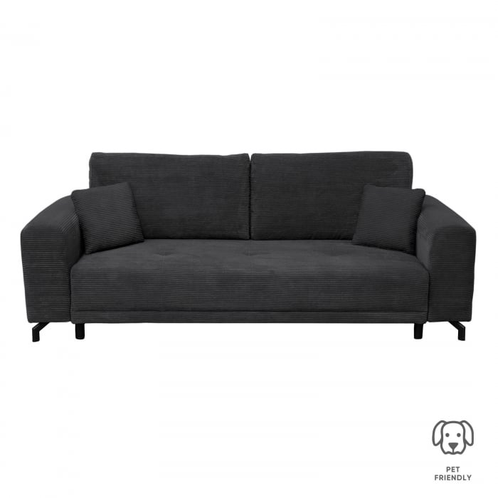 Canapea VEGA extensibila, 3 locuri, cu arcuri si lada depozitare, gri inchis, 240x111x72 cm