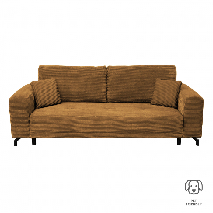 Canapea VEGA extensibila, 3 locuri, cu arcuri si lada depozitare, mustar, 240x111x72 cm