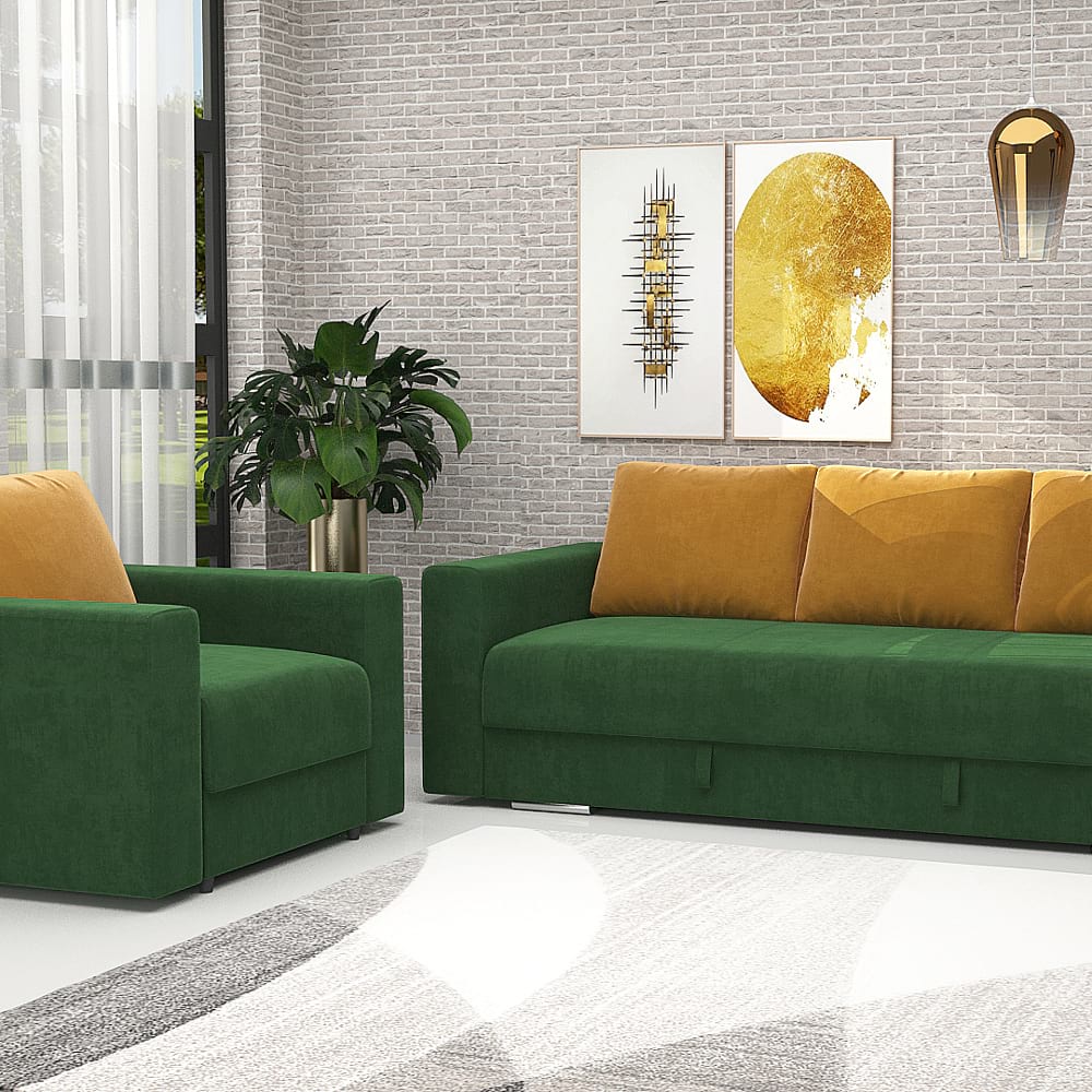 <div id="content_block_description" class="wysiwyg-content"> </div><p>Setul de canapea extensibila si 2 fotolii MAGIS din catifea Verde si perne catifea Galben Mustar este un produs clasic, numit deseori ,,canapea hol,,.<br></p><p><span style="line-height: 1.6;"><b><img src="https://www2.tamos.ro/images/companies/1/Icons%20TAMOS/untitled%20folder/Produs%20configurabil%2050%20opt.png?1657004447735"> Caracteristicile si avantaje </b></span><b><span style="line-height: 20.8px;">Setului de canapea extensibila si 2 fotolii MAGIS</span></b>:<br></p><ul><li>Structura metalica rigida</li><li>Sistem de extensie metalic, balamale cu arc, sistem de sincronizare a ridicarii</li><li>Pentru durabilitate ridicata, sezutul este conceput dintr-un sistem modern de plasa de arcuri si bureti de calitate.</li><li>Lada de depozitare din PAL melaminat</li><li>Perne decorative cu fermoar , dim. 55*77*10cm </li></ul><p><b><img src="https://www2.tamos.ro/images/companies/1/Icons%20TAMOS/untitled%20folder/Mobilier%20kit%2050%20opt.png?1657004476086" style="cursor: pointer;"> Mobilier modular, se livreaza demontat, ambalat in cutii de carton protejate cu folie pvc.</b></p><p><b><img src="https://www2.tamos.ro/images/companies/1/Icons%20TAMOS/untitled%20folder/Materiale%2050%20opt.png?1657004693980" style="cursor: pointer;"> Decor/materiale:</b></p><ul><li><b>Catifea Verde , perne catifea Galben Mustar</b></li></ul><p><span></span><b>Dimensiune canapea compacta:</b></p><ul><li>lungime: 192cm</li><li>latime: 95cm</li><li>inaltime sezut: 46cm</li><li>inaltime spatar: 75cm</li><li>inaltime totala(inclusiv perne): 87cm</li></ul><p><b>Dimensiune canapea extinsa:</b></p><ul><li>lungime: 225cm (lungimea de dormit 192cm)</li><li>latime: 150cm (suprafata de dormit, ideala pentru 2 persoane)</li><li>inaltime sezut: 46cm</li></ul><p><b>Dimensiuni fotoliu:</b></p><ul><li>lungime: 95cm </li><li>latime: 95cm </li><li>inaltime sezut: 41cm</li><li>inaltime spatar: 75cm</li><li>inaltime totala(inclusiv perne): 87cm</li></ul><p><b><img src="https://www2.tamos.ro/images/companies/1/Icons%20TAMOS/untitled%20folder/Garantie%2050%20opt.png?1657005042583" style="cursor: pointer;"> Garantie producator 24 luni</b></p><div class="wysiwyg-content" id="content_block_description"><div class="descriere"><p><br></p> </div></div>