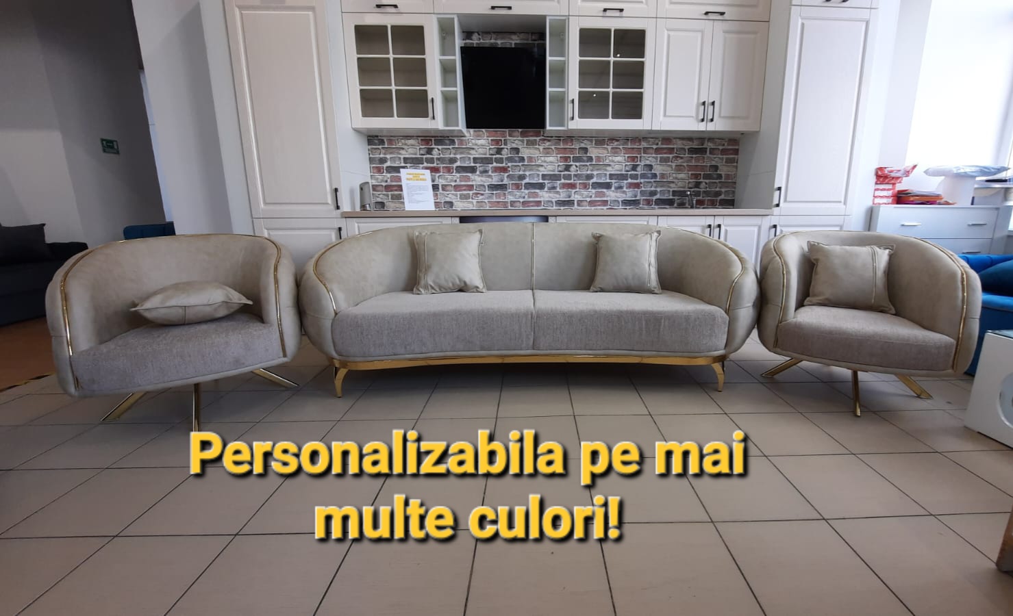 Finisajele șic într-un stil glamour fac ca piesa de mobilier să se potrivească practic în orice stil. Tapițeria aspectuoasa și moale la atingere fac canapeaua confortabila si garantează condițiile perfecte pentru relaxare. Material: Catifea Dimensiuni canapea: 220 cm x 100 cm x 90 cm dimensiunea totala Adancime sezut – 170 cm x 70 cm Inaltime…