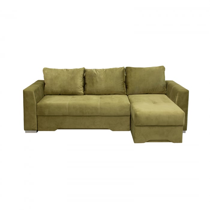 Coltar ALESSIA II extensibil, cu arcuri si lada depozitare, colt interschimbabil, verde, 250x150x75 cm