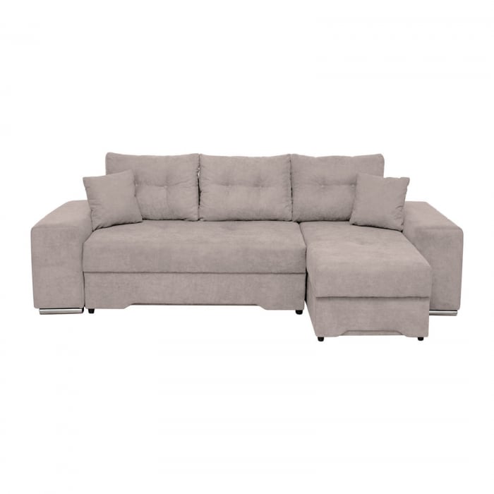 Coltar AMALIA extensibil, cu arcuri si lada depozitare, colt interschimbabil, gri cu nuante roz, 272x145x78 cm