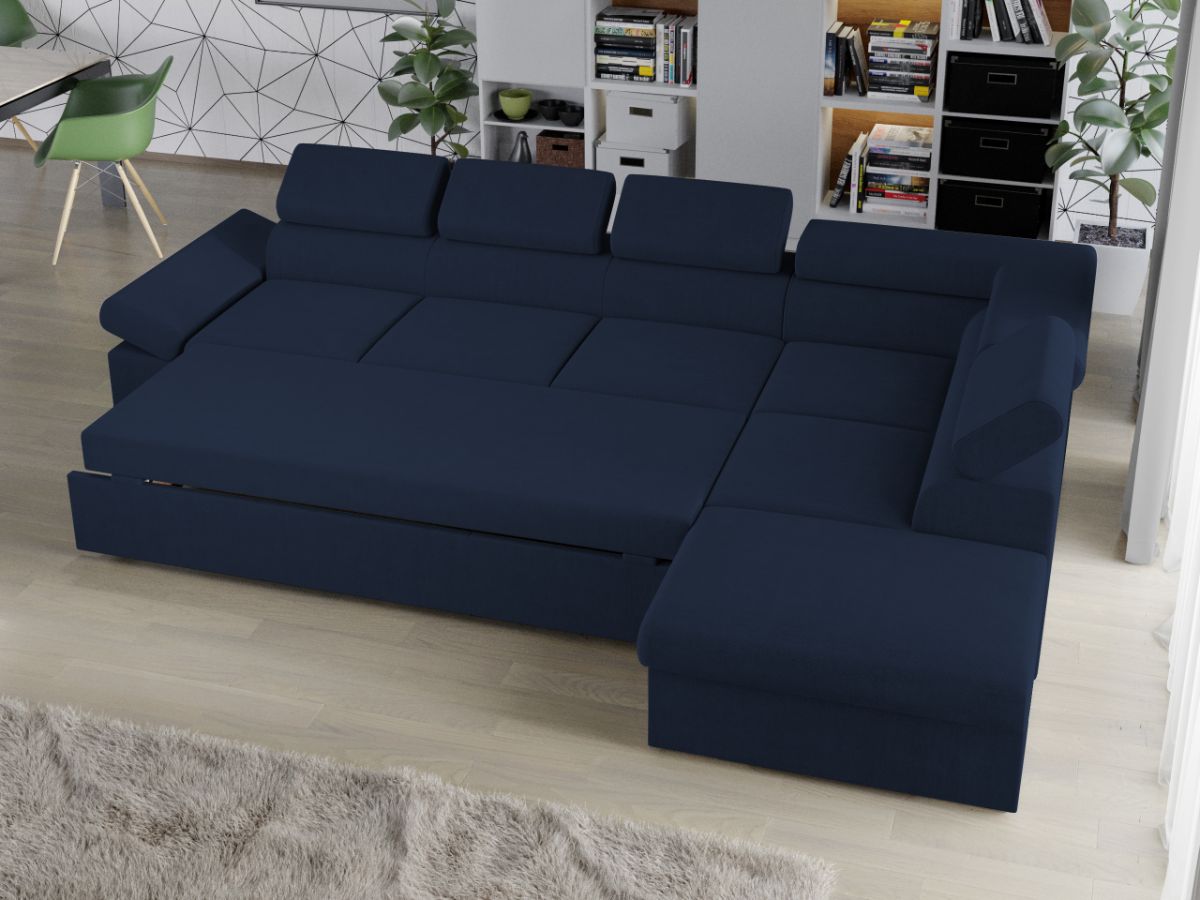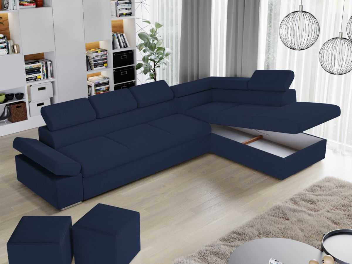 Coltar Aria + 1 loc Albastru Coltar Aria + 1 loc Albastru este un model elegant, confortabil si incapator, caracterizat de forme moderne si simple. Imbina cu succes functionalitatea cu designul, transformandu-se rapid intr-un pat confortabil de 240 x 125 cm . Este prevazut cu lada pentru depozitare pozitionata sub sezlong, care poate fi accesata prin ridicarea partii superioare a acestuia. Poti avea parte de relaxare completa si un confort sporit, gratie bratului si tetierelor reglabile , care ofera sustinere corpului tau exact in pozitia dorita. Este potrivit pentru un living cu dimensiuni generoase, avand dimensiunea de: 310 cm lungime, 205 cm latime, 90 cm inaltime totala . Este tapitat cu stofa de calitate pe diverse culori. Atentie:  Pretul afisat nu include alte accesorii sau obiecte de decor. Taburetele, pernele deco si draperiile se pot achizitiona optional. Livrare gratuita si rapida, 4-10 zile lucratoare prin flota proprie Suntem producatori de tapiterii, fara intermediari Toate piesele de tapiterii au o garantie de 2 ani Sezutul este din relaxa (arc sinusoidal, arc elicoidal si poliuretan) , iar extensia este din poliuretan . Scheletul este rezistent, realizat pe structura solida de fag si pal. Extensia de tip sertar este pozitionata sub sezutul coltarului. Se deschide ca un sertar, apoi se ridica salteaua din interiorul acestuia. Coltar Aria + 1 loc Albastru se incadreaza cu usurinta in majoritatea locuintelor indiferent de stilul acestora. Puteti alege din mai multe culori pentru stofa. Produsele disponibile le puteti vedea aici Modele Aria . Dimensiuni Coltar Aria + 1 loc Lungime: 310 cm Latime: 205 cm Lungime intre brate: 240 cm Inaltime sezut: 46 cm Inaltime : 90 cm Adancime sezut: 56 cm Adancime selon 170 cm Latime sezlon 93 cm Dimensiuni extinsa Lungime extinsa: 240 cm Adancime extinsa: 125 cm Tapiterie Coltar Aria + 1 loc Albastru Tapiteria produsului este din stofa Albastra. Nuanta acestui produs nu este pretentioasa, mascheaza eventualele evenimente neplacute prin care se poate murdari sau pata si se integreaza perfect in majoritatea locuintelor. Intretinere: se recomanda ca praful sa se stearga cu un material textil moale (finet) umed si sa nu se curete cu agenti chimici (diluant, acetona). Imaginile sunt cu titlu de prezentare si pot avea mici diferente de nuante in functie de display. Dimensiunile sunt exprimate în centimetri și pot oscila între ± 50 mm.