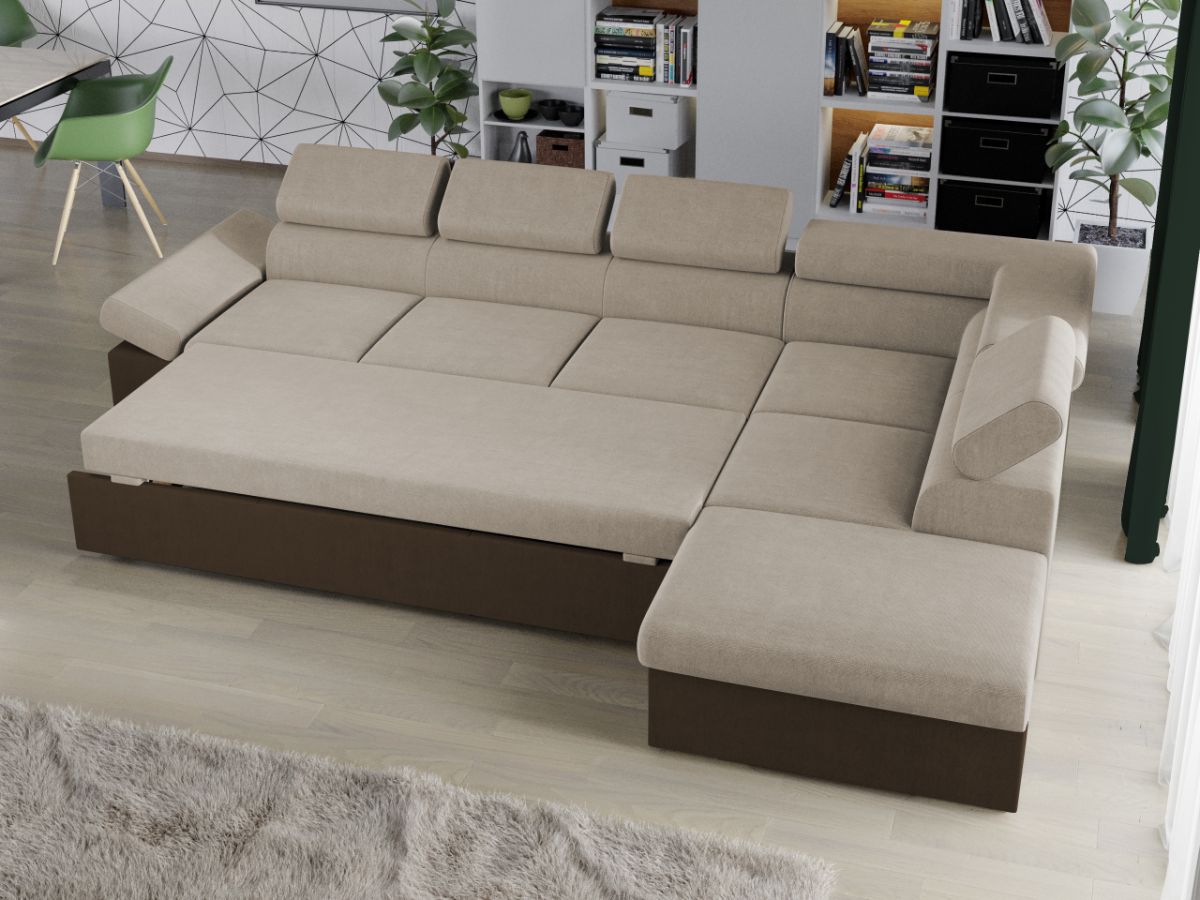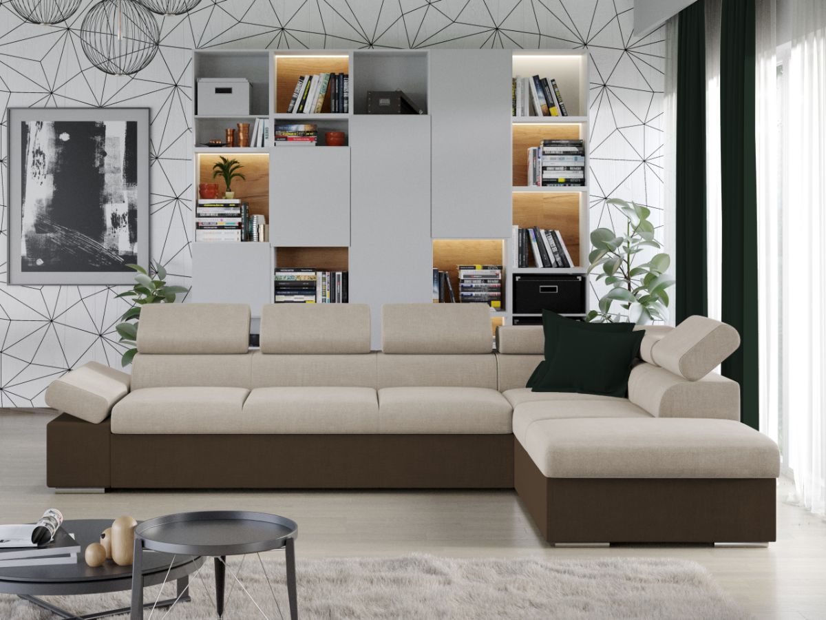 Coltar Aria + 1 loc Crem / Maro Coltar Aria + 1 loc Crem / Maro este un model elegant, confortabil si incapator, caracterizat de forme moderne si simple. Imbina cu succes functionalitatea cu designul, transformandu-se rapid intr-un pat confortabil de 240 x 125 cm . Este prevazut cu lada pentru depozitare pozitionata sub sezlong, care poate fi accesata prin ridicarea partii superioare a acestuia. Poti avea parte de relaxare completa si un confort sporit, gratie bratului si tetierelor reglabile , care ofera sustinere corpului tau exact in pozitia dorita. Este potrivit pentru un living cu dimensiuni generoase, avand dimensiunea de: 310 cm lungime, 205 cm latime, 90 cm inaltime totala . Este tapitat cu stofa de calitate pe diverse culori. Atentie: Pretul afisat nu include alte accesorii sau obiecte de decor. Taburetele, pernele deco si draperiile se pot achizitiona optional. Livrare gratuita si rapida, 4-10 zile lucratoare prin flota proprie Suntem producatori de tapiterii, fara intermediari Toate piesele de tapiterii au o garantie de 2 ani Sezutul este din relaxa (arc sinusoidal, arc elicoidal si poliuretan) , iar extensia este din poliuretan . Scheletul este rezistent, realizat pe structura solida de fag si pal. Extensia de tip sertar este pozitionata sub sezutul coltarului. Se deschide ca un sertar, apoi se ridica salteaua din interiorul acestuia. Coltar Aria + 1 loc Crem / Maro se incadreaza cu usurinta in majoritatea locuintelor indiferent de stilul acestora. Puteti alege din mai multe culori pentru stofa. Produsele disponibile le puteti vedea aici Modele Aria . Dimensiuni Coltar Aria + 1 loc Lungime: 310 cm Latime: 205 cm Lungime intre brate: 240 cm Inaltime sezut: 46 cm Inaltime : 90 cm Adancime sezut: 56 cm Adancime selon 170 cm Latime sezlon 93 cm Dimensiuni extinsa Lungime extinsa: 240 cm Adancime extinsa: 125 cm Tapiterie Coltar Aria + 1 loc Crem / Maro Tapiteria produsului este din stofa Crem si Maro. Nuantele acestui produs nu sunt pretentioase, mascheaza eventualele evenimente neplacute prin care se pot murdari sau pata si se integreaza perfect in majoritatea locuintelor. Intretinere: se recomanda ca praful sa se stearga cu un material textil moale (finet) umed si sa nu se curete cu agenti chimici (diluant, acetona). Imaginile sunt cu titlu de prezentare si pot avea mici diferente de nuante in functie de display. Dimensiunile sunt exprimate în centimetri și pot oscila între ± 50 mm.