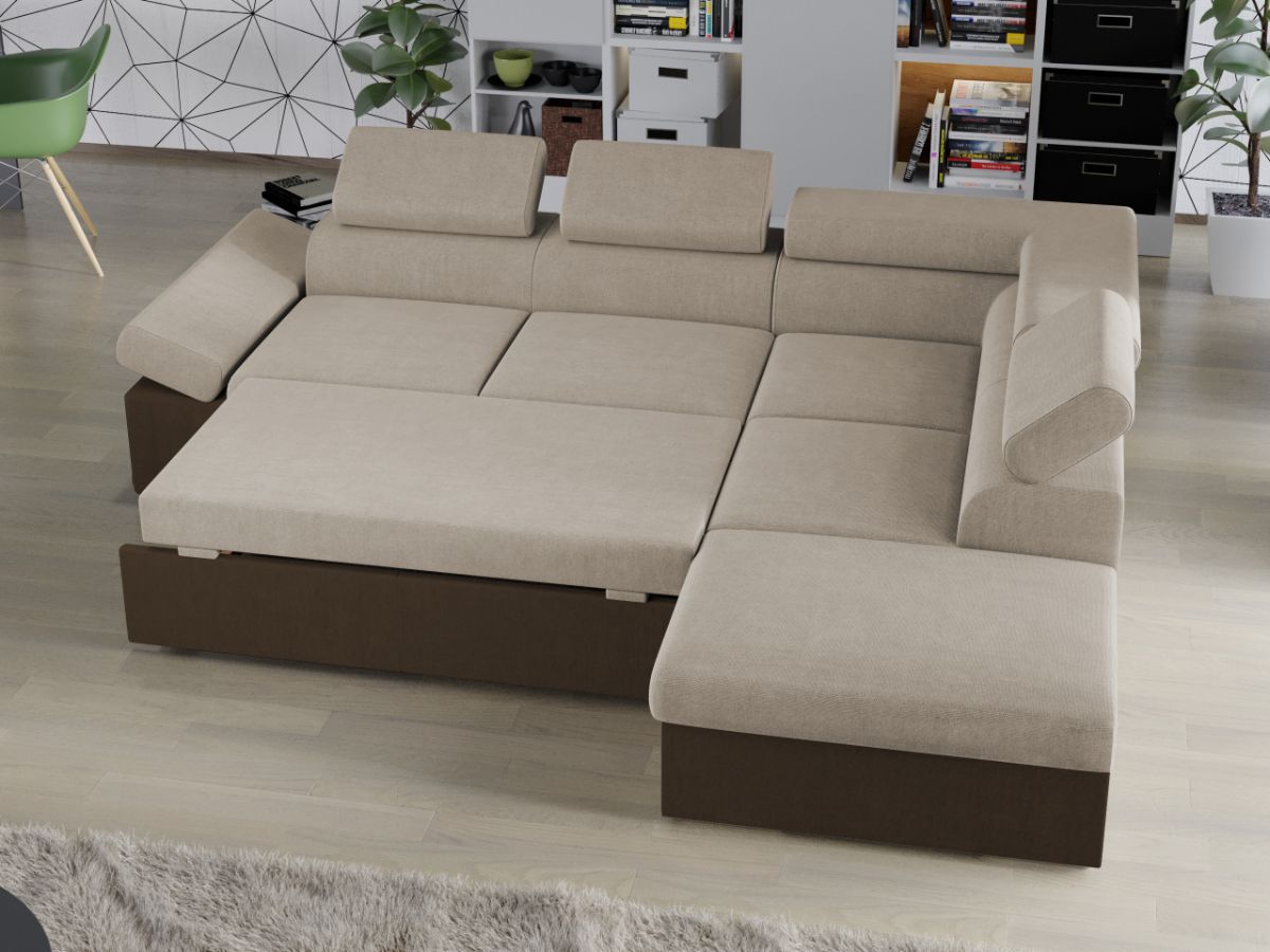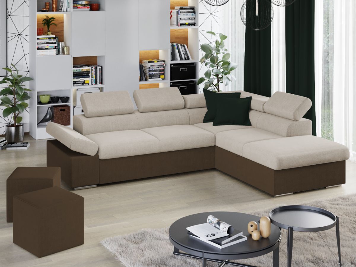 Coltar Aria Crem / Maro Coltar Aria Crem / Maro este un model elegant, confortabil si incapator, caracterizat de forme moderne si simple. Imbina cu succes functionalitatea cu designul, transformandu-se rapid intr-un pat confortabil de 190 x 125 cm . Este prevazut cu lada pentru depozitare pozitionata sub sezlong, care poate fi accesata prin ridicarea partii superioare a acestuia. Poti avea parte de relaxare completa si un confort sporit, gratie bratului si tetierelor reglabile , care ofera sustinere corpului tau exact in pozitia dorita. Este potrivit pentru un living cu dimensiuni generoase, avand dimensiunea de: 260 cm lungime, 205 cm latime, 90 cm inaltime totala . Este tapitat cu stofa de calitate pe diverse culori. Atentie: Pretul afisat nu include alte accesorii sau obiecte de decor. Taburetele, pernele deco si draperiile se pot achizitiona optional. Livrare gratuita si rapida, 4-10 zile lucratoare prin flota proprie Suntem producatori de tapiterii, fara intermediari Toate piesele de tapiterii au o garantie de 2 ani Sezutul este din relaxa (arc sinusoidal, arc elicoidal si poliuretan) , iar extensia este din poliuretan . Scheletul este rezistent, realizat pe structura solida de fag si pal. Extensia de tip sertar este pozitionata sub sezutul coltarului. Se deschide ca un sertar, apoi se ridica salteaua din interiorul acestuia. Coltar Aria Crem / Maro se incadreaza cu usurinta in majoritatea locuintelor indiferent de stilul acestora. Puteti alege din mai multe culori pentru stofa. Produsele disponibile le puteti vedea aici Modele Aria . Dimensiuni Coltar Aria Lungime: 260 cm Latime: 205 cm Lungime intre brate: 190 cm Inaltime sezut: 46 cm Inaltime : 90 cm Adancime sezut: 56 cm Adancime selon 170 cm Latime sezlon 93 cm Dimensiuni extinsa Lungime extinsa: 190 cm Adancime extinsa: 125 cm Tapiterie Coltar Aria Crem / Maro Tapiteria produsului este din stofa Crem si Maro. Nuantele acestui produs nu sunt pretentioase, mascheaza eventualele evenimente neplacute prin care se pot murdari sau pata si se integreaza perfect in majoritatea locuintelor. Intretinere: se recomanda ca praful sa se stearga cu un material textil moale (finet) umed si sa nu se curete cu agenti chimici (diluant, acetona). Imaginile sunt cu titlu de prezentare si pot avea mici diferente de nuante in functie de display. Dimensiunile sunt exprimate în centimetri și pot oscila între ± 50 mm.