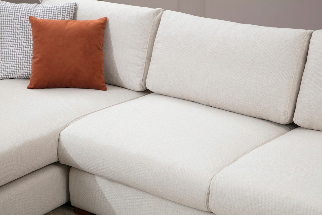 Tesatura: PoliesterLungime: 312 cm X 194 cm Latime: 95 cm Inaltime: 85 cmDimensiunea mesei : Lungime: 40 Latime: 89 cm Inaltime: 29 cmSpuma: 18 DNS Spumă tare gri / Arc / 24 DNS Feather pentru ședere60% spumă tăiată / 40% spumă de silicon pentru spatePerna: 60% spumă tăiată / 40% spumă de siliconMarime: 45 cm x 45 cm (2 piese)Pernă portabilă pentru șezut și spateTesatura care se curata uscatPicioare: Picioare din lemn de nucÎnălțimea spumei: 26 cmNu este extensibil