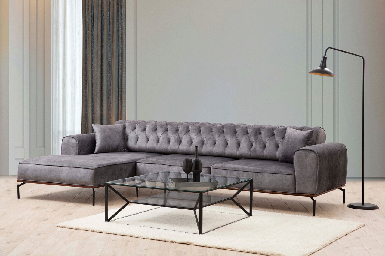 Tesatura: PoliesterLungime: 310 x 160 cm Latime: 90 cm Inaltime: 80 cmSpuma: 28 DNS Moale Spumă Gri/24 DNS Feather/Primăvară în mijloc Pentru ședere8 DNS spumă moale gri/24 DNS Feather pentru spateSistem: Sistem de canapea cu mecanism de spatar reglabil2 perne inclusePerne: 60% spumă tăiată / 40% spumă de silicon45 cm x 45 cm pentru 2 pernePernă fixă pentru spate/șezutTesatura care se curata uscatPicioare: Picioare din metal negru matNu este extensibil