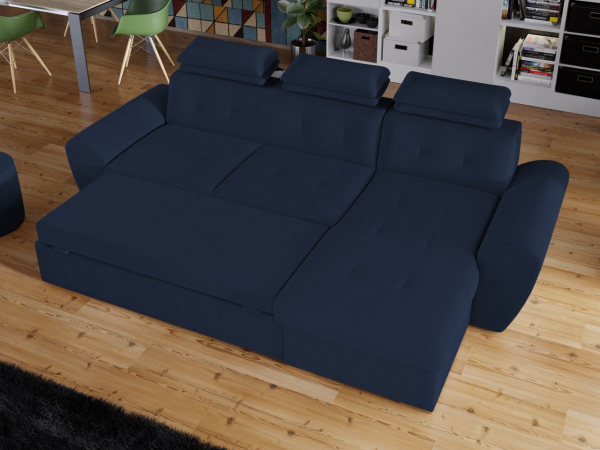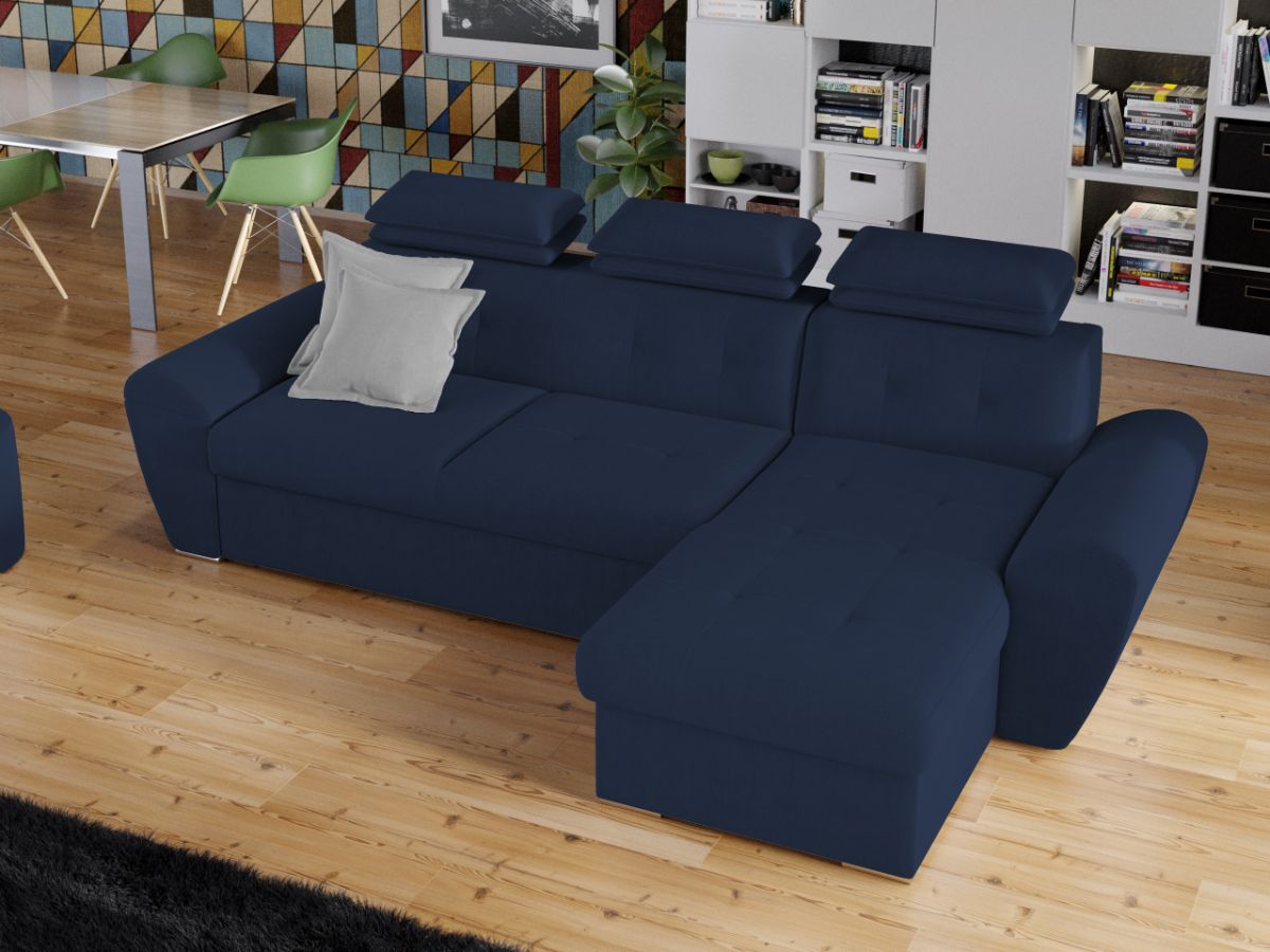 Coltar Barini Albastru Coltar Barini Albastru este un coltar cu design modern, cu forme rotunjite. Tetierele reglabile in mai multe trepte asigura confortul necesar in momentele de relaxare, sustinand capul exact in pozitia dorita. Picioarele argintii si butonii de pe sezut si de pe spatar confera eleganta acestui coltar. Se poate transforma intr-un pat in doar cateva minute si este prevazut cu lada pentru depozitare pozitionata sub sezlong, care poate fi accesata prin ridicarea partii superioare a acestuia. Coltarul are dimensiunea de: 280 cm lungime, 180 cm latime, 105 cm inaltime totala . Dupa extindere, obtineti un spatiu pentru odihna si relaxare, cu suprafata utila 228 x 130 cm . Este tapitat cu stofa de calitate pe diverse culori. Atentie: Pretul afisat nu include alte accesorii sau obiecte de decor. Taburetele, pernele deco si draperiile se pot achizitiona optional. Livrare gratuita si rapida, 4-10 zile lucratoare prin flota proprie Suntem producatori de tapiterii, fara intermediari Toate piesele de tapiterii au o garantie de 2 ani Sezutul si extensia coltarului sunt din poliuretan High Resilience . Scheletul este rezistent, realizat pe structura solida de fag si pal. Extensia de tip sertar este pozitionata sub sezutul coltarului. Se deschide ca un sertar, apoi se ridica salteaua din interiorul acestuia. Coltar Barini Albastru se incadreaza cu usurinta in majoritatea locuintelor indiferent de stilul acestora. Puteti alege din mai multe culori pentru stofa. Produsele disponibile le puteti vedea aici Modele Barini . Videoclipul contine alta nuanta decat cea de pe pagina produsului, acesta avand ca scop prezentarea familiei pentru a se reda in detaliu aspectul materialului. Dimensiuni Coltar Barini Lungime: 280 cm Latime: 180 cm Lungime intre brate: 228 cm Inaltime sezut: 45 cm Inaltime : 105 cm Adancime sezut: 65 cm Adancime selon 135 cm Latime sezlon 90 cm Dimensiuni extinsa Lungime extinsa: 228 cm Adancime extinsa: 130 cm Tapiterie Coltar Barini Albastru Tapiteria produsului este din stofa Albastra. Nuanta acestui produs nu este pretentioasa, mascheaza eventualele evenimente neplacute prin care se poate murdari sau pata si se integreaza perfect in majoritatea locuintelor. Intretinere: se recomanda ca praful sa se stearga cu un material textil moale (finet) umed si sa nu se curete cu agenti chimici (diluant, acetona). Imaginile sunt cu titlu de prezentare si pot avea mici diferente de nuante in functie de display. Dimensiunile sunt exprimate în centimetri și pot oscila între ± 50 mm.