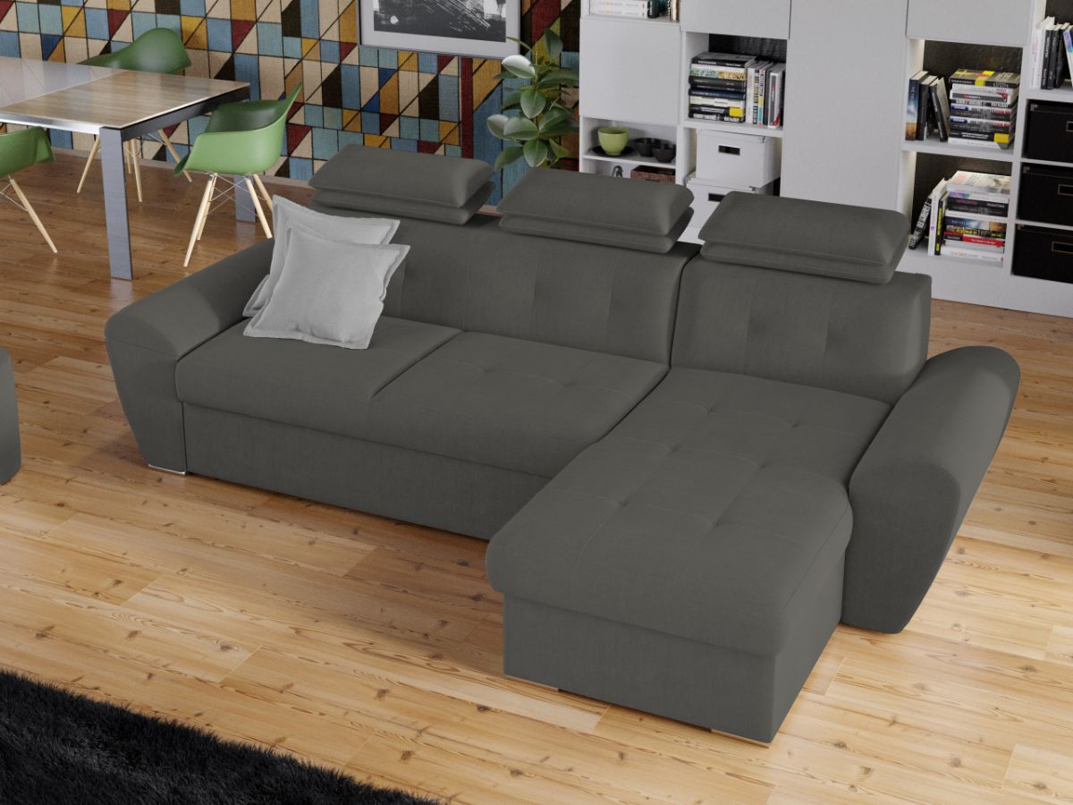 Coltar Barini Castel 93 Coltar Barini Castel 93 este un coltar cu design modern, cu forme rotunjite. Tetierele reglabile in mai multe trepte asigura confortul necesar in momentele de relaxare, sustinand capul exact in pozitia dorita. Picioarele argintii si butonii de pe sezut si de pe spatar confera eleganta acestui coltar. Se poate transforma intr-un pat in doar cateva minute si este prevazut cu lada pentru depozitare pozitionata sub sezlong, care poate fi accesata prin ridicarea partii superioare a acestuia. Coltarul are dimensiunea de: 280 cm lungime, 180 cm latime, 105 cm inaltime totala . Dupa extindere, obtineti un spatiu pentru odihna si relaxare, cu suprafata utila 228 x 130 cm . Este tapitat cu stofa de calitate pe diverse culori. Atentie: Pretul afisat nu include alte accesorii sau obiecte de decor. Taburetele, pernele deco si draperiile se pot achizitiona optional. Livrare gratuita si rapida, 4-10 zile lucratoare prin flota proprie Suntem producatori de tapiterii, fara intermediari Toate piesele de tapiterii au o garantie de 2 ani Sezutul si extensia coltarului sunt din poliuretan High Resilience . Scheletul este rezistent, realizat pe structura solida de fag si pal. Extensia de tip sertar este pozitionata sub sezutul coltarului. Se deschide ca un sertar, apoi se ridica salteaua din interiorul acestuia. Coltar Barini Castel 93 se incadreaza cu usurinta in majoritatea locuintelor indiferent de stilul acestora. Puteti alege din mai multe culori pentru stofa. Produsele disponibile le puteti vedea aici Modele Barini . Videoclipul contine alta nuanta decat cea de pe pagina produsului, acesta avand ca scop prezentarea familiei pentru a se reda in detaliu aspectul materialului. Dimensiuni Coltar Barini Lungime: 280 cm Latime: 180 cm Lungime intre brate: 228 cm Inaltime sezut: 45 cm Inaltime : 105 cm Adancime sezut: 65 cm Adancime selon 135 cm Latime sezlon 90 cm Dimensiuni extinsa Lungime extinsa: 228 cm Adancime extinsa: 130 cm Tapiterie Coltar Barini Castel 93 Tapiteria produsului este din stofa Castel 93. Nuanta acestui produs nu este pretentioasa, mascheaza eventualele evenimente neplacute prin care se poate murdari sau pata si se integreaza perfect in majoritatea locuintelor. Intretinere: se recomanda ca praful sa se stearga cu un material textil moale (finet) umed si sa nu se curete cu agenti chimici (diluant, acetona). Imaginile sunt cu titlu de prezentare si pot avea mici diferente de nuante in functie de display. Dimensiunile sunt exprimate în centimetri și pot oscila între ± 50 mm.