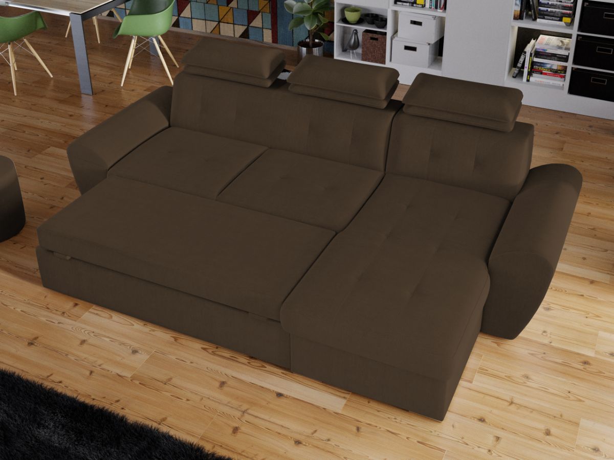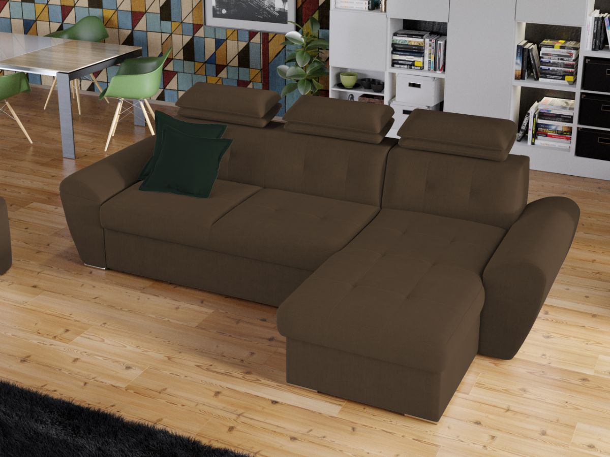 Coltar Barini Maro Coltar Barini Maro este un coltar cu design modern, cu forme rotunjite. Tetierele reglabile in mai multe trepte asigura confortul necesar in momentele de relaxare, sustinand capul exact in pozitia dorita. Picioarele argintii si butonii de pe sezut si de pe spatar confera eleganta acestui coltar. Se poate transforma intr-un pat in doar cateva minute si este prevazut cu lada pentru depozitare pozitionata sub sezlong, care poate fi accesata prin ridicarea partii superioare a acestuia. Coltarul are dimensiunea de: 280 cm lungime, 180 cm latime, 105 cm inaltime totala . Dupa extindere, obtineti un spatiu pentru odihna si relaxare, cu suprafata utila 228 x 130 cm . Este tapitat cu stofa de calitate pe diverse culori. Atentie: Pretul afisat nu include alte accesorii sau obiecte de decor. Taburetele, pernele deco si draperiile se pot achizitiona optional. Livrare gratuita si rapida, 4-10 zile lucratoare prin flota proprie Suntem producatori de tapiterii, fara intermediari Toate piesele de tapiterii au o garantie de 2 ani Sezutul si extensia coltarului sunt din poliuretan High Resilience . Scheletul este rezistent, realizat pe structura solida de fag si pal. Extensia de tip sertar este pozitionata sub sezutul coltarului. Se deschide ca un sertar, apoi se ridica salteaua din interiorul acestuia. Coltar Barini Maro se incadreaza cu usurinta in majoritatea locuintelor indiferent de stilul acestora. Puteti alege din mai multe culori pentru stofa. Produsele disponibile le puteti vedea aici Modele Barini . Videoclipul contine alta nuanta decat cea de pe pagina produsului, acesta avand ca scop prezentarea familiei pentru a se reda in detaliu aspectul materialului. Dimensiuni Coltar Barini Lungime: 280 cm Latime: 180 cm Lungime intre brate: 228 cm Inaltime sezut: 45 cm Inaltime : 105 cm Adancime sezut: 65 cm Adancime selon 135 cm Latime sezlon 90 cm Dimensiuni extinsa Lungime extinsa: 228 cm Adancime extinsa: 130 cm Tapiterie Coltar Barini Maro Tapiteria produsului este din stofa Maro. Nuanta acestui produs nu este pretentioasa, mascheaza eventualele evenimente neplacute prin care se poate murdari sau pata si se integreaza perfect in majoritatea locuintelor. Intretinere: se recomanda ca praful sa se stearga cu un material textil moale (finet) umed si sa nu se curete cu agenti chimici (diluant, acetona). Imaginile sunt cu titlu de prezentare si pot avea mici diferente de nuante in functie de display. Dimensiunile sunt exprimate în centimetri și pot oscila între ± 50 mm.
