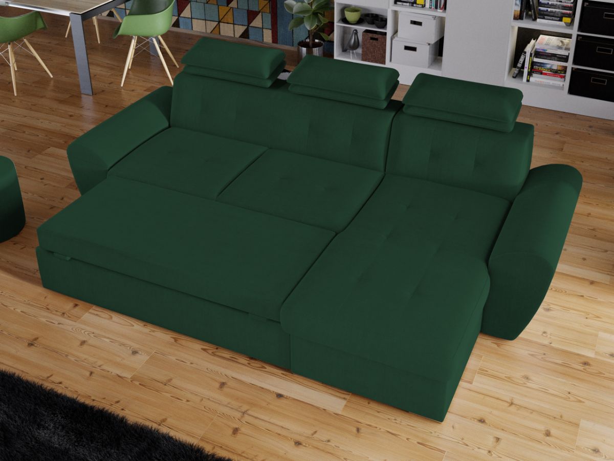 Coltar Barini Verde Coltar Barini Verde este un coltar cu design modern, cu forme rotunjite. Tetierele reglabile in mai multe trepte asigura confortul necesar in momentele de relaxare, sustinand capul exact in pozitia dorita. Picioarele argintii si butonii de pe sezut si de pe spatar confera eleganta acestui coltar. Se poate transforma intr-un pat in doar cateva minute si este prevazut cu lada pentru depozitare pozitionata sub sezlong, care poate fi accesata prin ridicarea partii superioare a acestuia. Coltarul are dimensiunea de: 280 cm lungime, 180 cm latime, 105 cm inaltime totala . Dupa extindere, obtineti un spatiu pentru odihna si relaxare, cu suprafata utila 228 x 130 cm . Este tapitat cu stofa de calitate pe diverse culori. Atentie: Pretul afisat nu include alte accesorii sau obiecte de decor. Taburetele, pernele deco si draperiile se pot achizitiona optional. Livrare gratuita si rapida, 4-10 zile lucratoare prin flota proprie Suntem producatori de tapiterii, fara intermediari Toate piesele de tapiterii au o garantie de 2 ani Sezutul si extensia coltarului sunt din poliuretan High Resilience . Scheletul este rezistent, realizat pe structura solida de fag si pal. Extensia de tip sertar este pozitionata sub sezutul coltarului. Se deschide ca un sertar, apoi se ridica salteaua din interiorul acestuia. Coltar Barini Verde se incadreaza cu usurinta in majoritatea locuintelor indiferent de stilul acestora. Puteti alege din mai multe culori pentru stofa. Produsele disponibile le puteti vedea aici Modele Barini . Videoclipul contine alta nuanta decat cea de pe pagina produsului, acesta avand ca scop prezentarea familiei pentru a se reda in detaliu aspectul materialului. Dimensiuni Coltar Barini Lungime: 280 cm Latime: 180 cm Lungime intre brate: 228 cm Inaltime sezut: 45 cm Inaltime : 105 cm Adancime sezut: 65 cm Adancime selon 135 cm Latime sezlon 90 cm Dimensiuni extinsa Lungime extinsa: 228 cm Adancime extinsa: 130 cm Tapiterie Coltar Barini Verde Tapiteria produsului este din stofa Verde. Nuanta acestui produs nu este pretentioasa, mascheaza eventualele evenimente neplacute prin care se poate murdari sau pata si se integreaza perfect in majoritatea locuintelor. Intretinere: se recomanda ca praful sa se stearga cu un material textil moale (finet) umed si sa nu se curete cu agenti chimici (diluant, acetona). Imaginile sunt cu titlu de prezentare si pot avea mici diferente de nuante in functie de display. Dimensiunile sunt exprimate în centimetri și pot oscila între ± 50 mm.