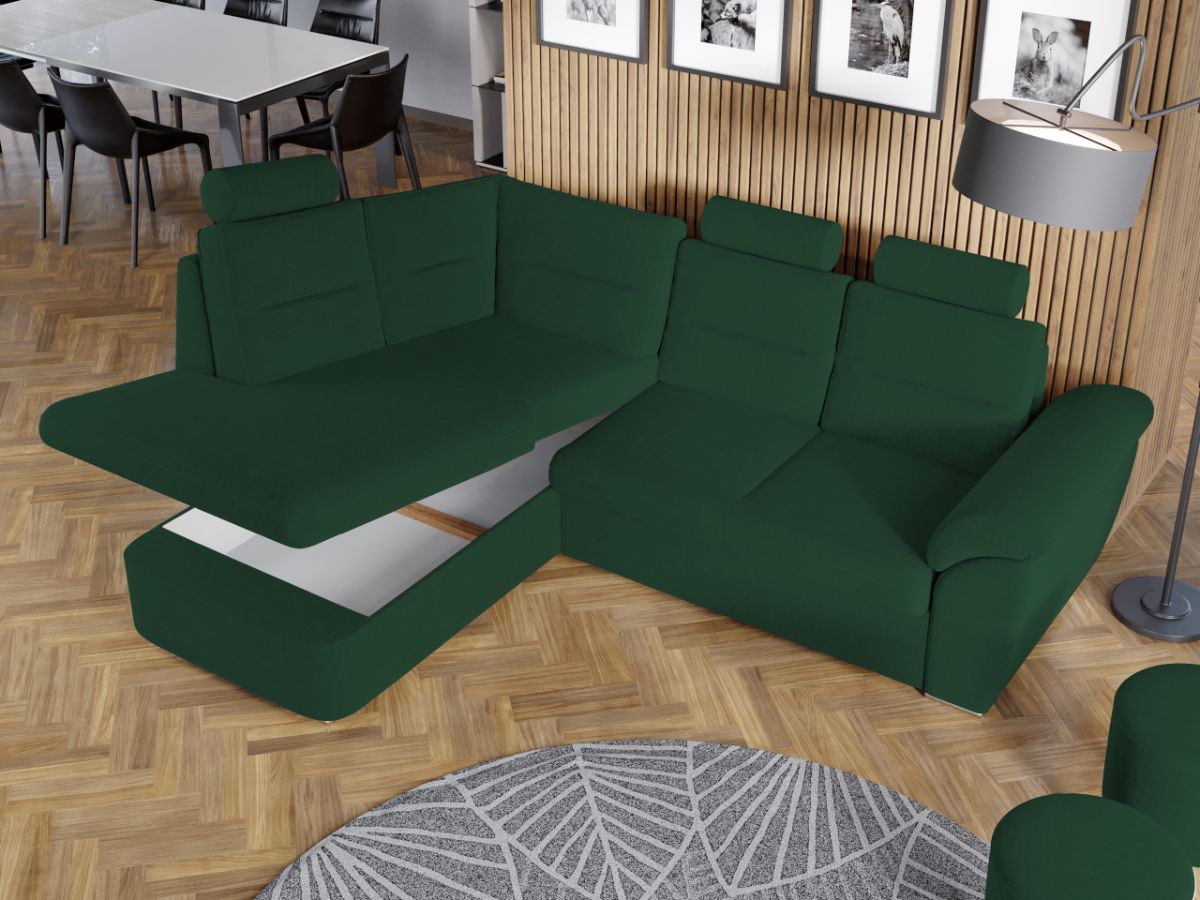 Coltar Biano Verde Coltar Biano Verde are un design modern , contemporan si un aspect impunator, caracterizat de forme rotunjite si simple. Imbina cu succes functionalitatea cu designul, transformandu-se rapid intr-un pat confortabil de 182 x 127 cm . Este prevazut cu lada pentru depozitare pozitionata sub sezlong, care poate fi accesata prin ridicarea partii superioare a acestuia. Poti avea parte de relaxare completa si un confort sporit, gratie tetierelor reglabile , spatarului si bratului care ofera sustinere corpului tau exact in pozitia dorita. Este potrivit pentru un living cu dimensiuni generoase, avand dimensiunea de: 245 cm lungime, 184 cm latime, 106 cm inaltime totala . Este tapitat cu stofa de calitate pe diverse culori. Atentie: Pretul afisat nu include alte accesorii sau obiecte de decor. Taburetele, pernele deco si draperiile se pot achizitiona optional. Livrare gratuita si rapida, 4-10 zile lucratoare prin flota proprie Suntem producatori de tapiterii, fara intermediari Toate piesele de tapiterii au o garantie de 2 ani Sezutul si extensia coltarului sunt din poliuretan High Resilience . Scheletul este rezistent, realizat pe structura solida de fag si pal. Extensia de tip sertar este pozitionata sub sezutul coltarului. Se deschide ca un sertar, apoi se ridica salteaua din interiorul acestuia. Coltar Biano Verde se incadreaza cu usurinta in majoritatea locuintelor indiferent de stilul acestora. Puteti alege din mai multe culori pentru stofa. Produsele disponibile le puteti vedea aici Modele Biano . Dimensiuni Coltar Biano Lungime: 245 cm Latime: 184 cm Lungime intre brate: 182 cm Inaltime sezut: 43 cm Inaltime : 106 cm Adancime sezut: 60 cm Adancime selon 152 cm Latime sezlon 98 cm Dimensiuni extinsa Lungime extinsa: 182 cm Adancime extinsa: 127 cm Tapiterie Coltar Biano Verde Tapiteria produsului este din stofa Verde. Nuanta acestui produs nu este pretentioasa, mascheaza eventualele evenimente neplacute prin care se poate murdari sau pata si se integreaza perfect in majoritatea locuintelor. Intretinere: se recomanda ca praful sa se stearga cu un material textil moale (finet) umed si sa nu se curete cu agenti chimici (diluant, acetona). Imaginile sunt cu titlu de prezentare si pot avea mici diferente de nuante in functie de display. Dimensiunile sunt exprimate în centimetri și pot oscila între ± 50 mm.