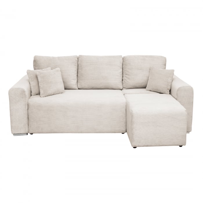 Coltar Canapea BEGA extensibil, cu arcuri si lada depozitare, colt interschimbabil, bej, 240x153x80 cm