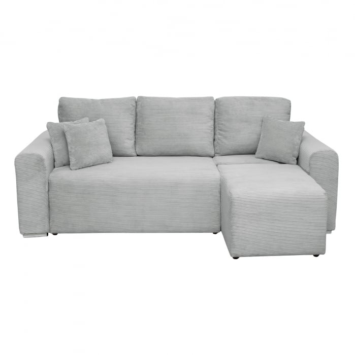 Coltar Canapea BEGA extensibil, cu arcuri si lada depozitare, colt interschimbabil, gri deschis, 240x153x80 cm