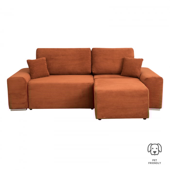 Coltar Canapea YORK extensibil, cu arcuri si lada depozitare, colt interschimbabil, caramiziu, 260x150x80 cm