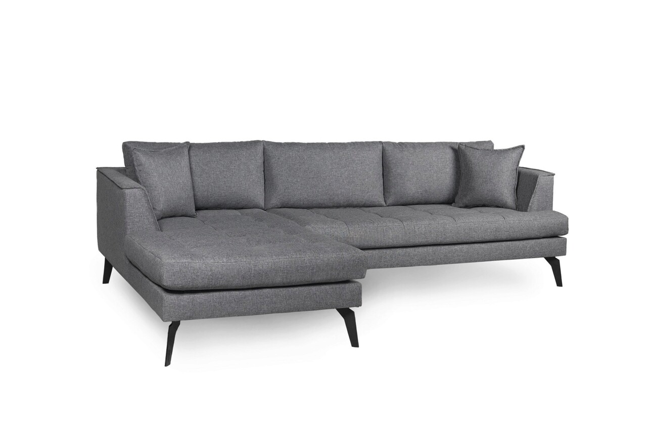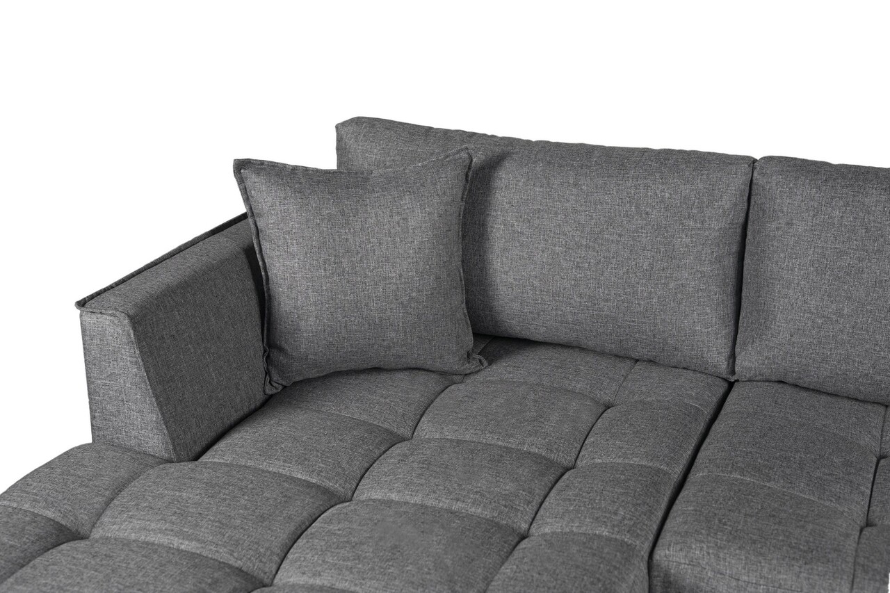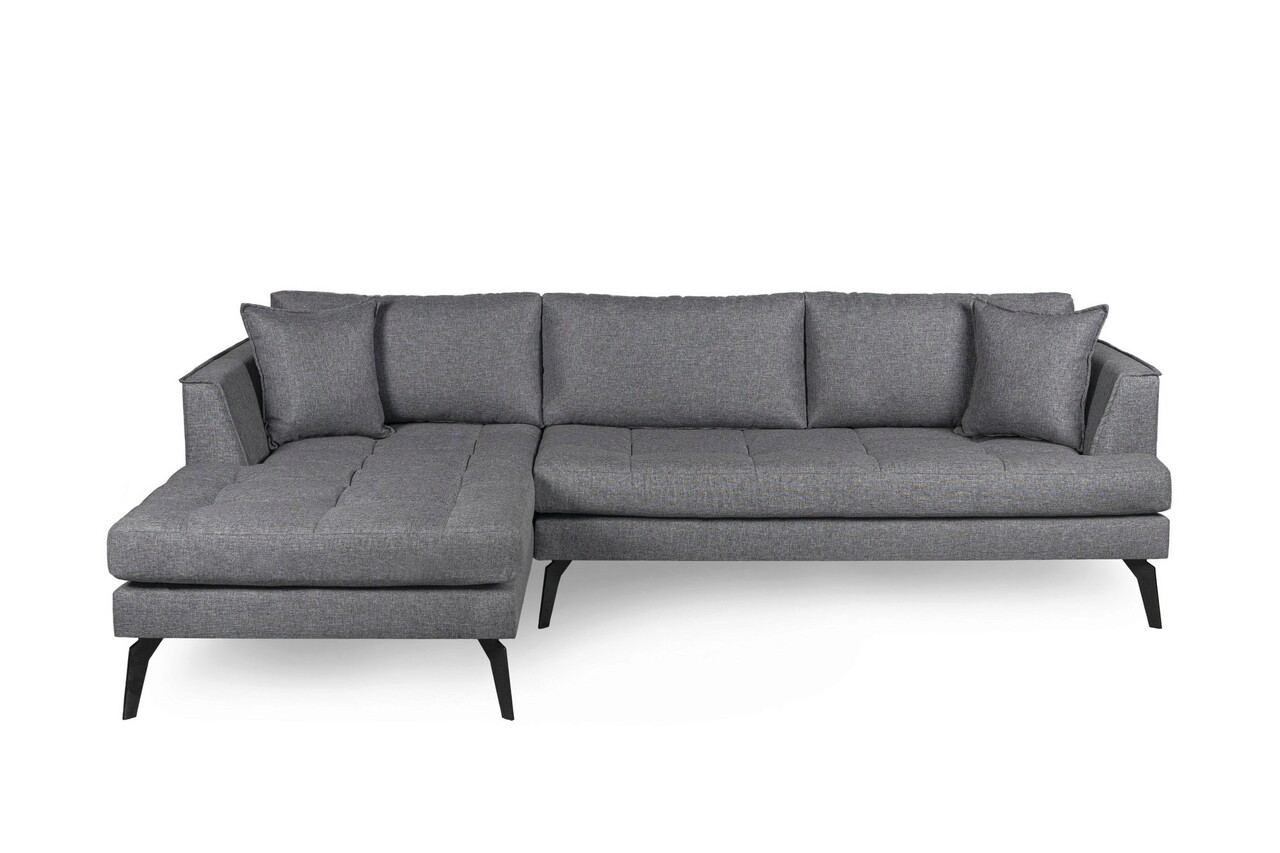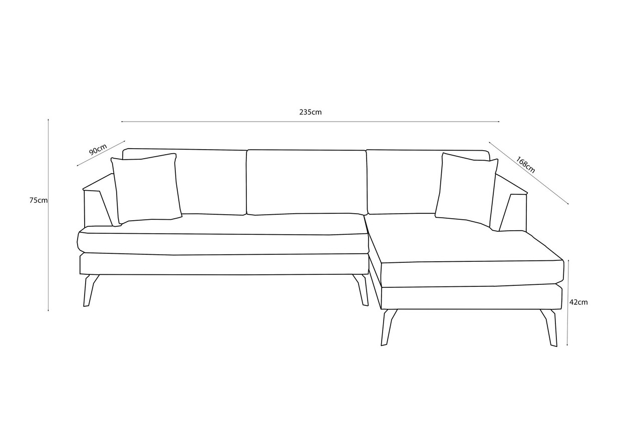 Tesatura: Poliester32 DNS Miez de spuma + 24 DNS Spuma soft (12 cm)Picioare acoperite cu pulbere electrostatică neagrăMiez de spuma de inalta rezistenta si spatar umplut cu fibre.Latime: 235 cmAdancime: 168 cmInaltime: 75 cmInaltime sezut: 42 cmAdâncimea scaunului: 65 cmInaltime picior: 18 cmNu este extensibil