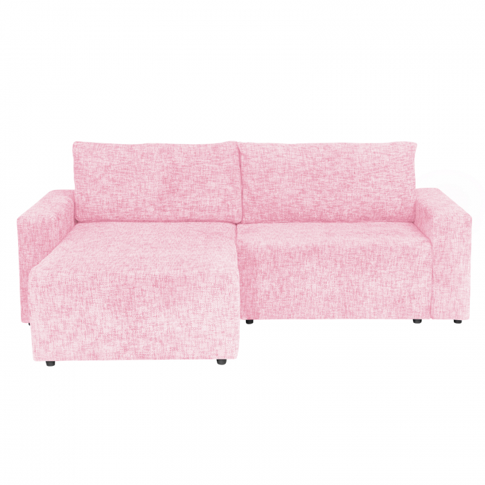 Coltar DALLAS ONE extensibil, cu lada depozitare, colt interschimbabil, roz, 258x173x90 cm