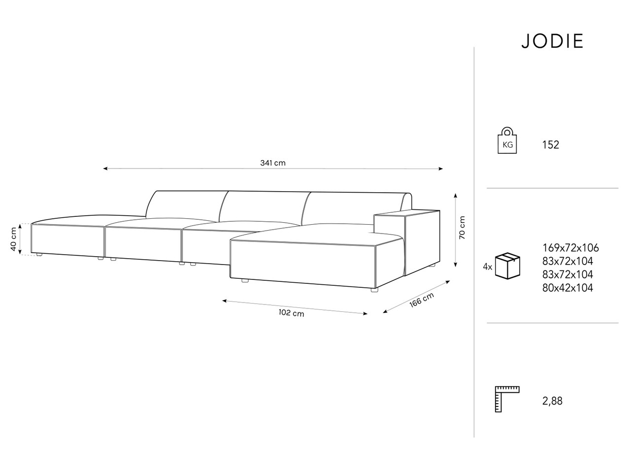 Coltar dreapta 5 locuri, Jodie, Micadoni Home, BL, fara cotiera, 341x166x70 cm, catifea, verde