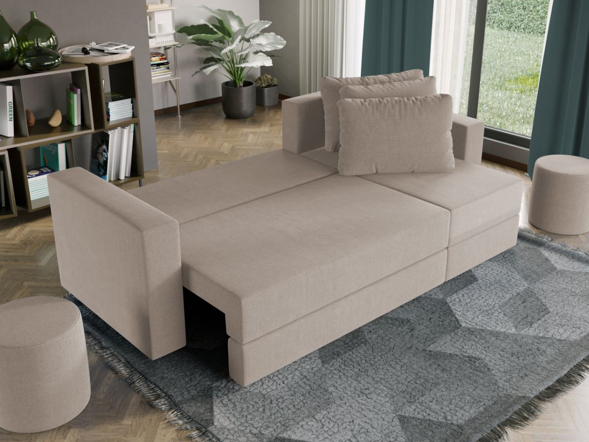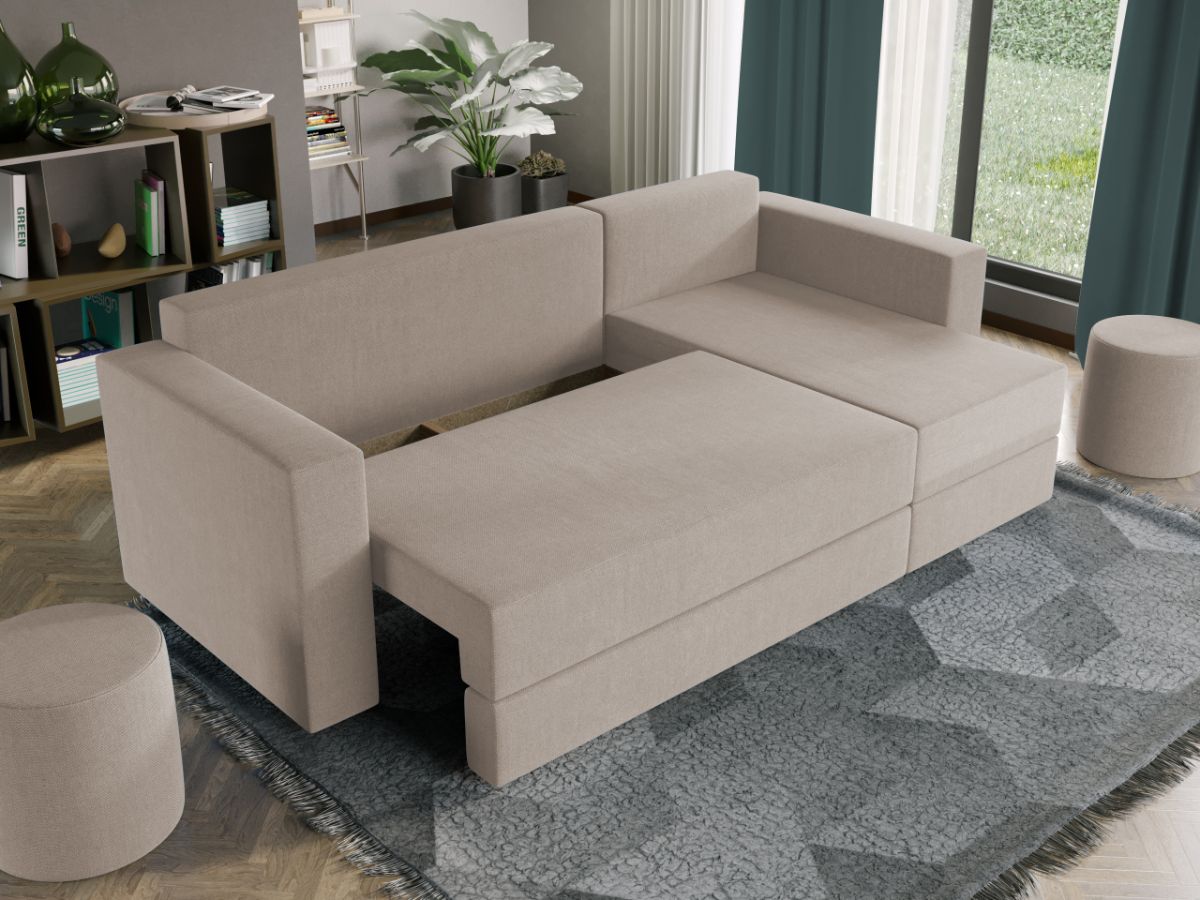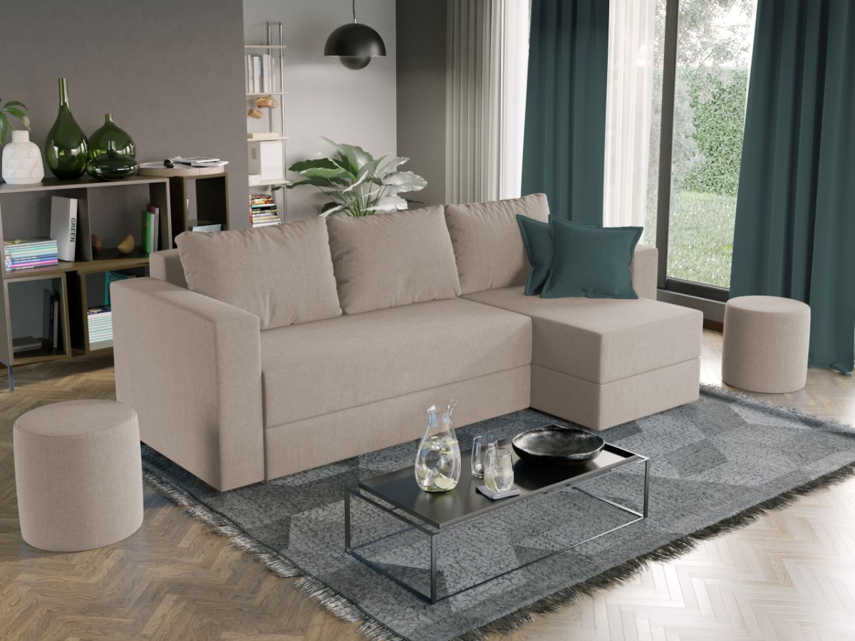 Oferta Coltar extensibil cu lada Alfa crem Profitati de oferta pentru Coltar extensibil cu lada Alfa crem , aveti urmatoarele beneficii: Fara surprize la livrare, este exact ca in pozele de prezentare Livrare gratuita si rapida, 4-10 zile lucratoare prin curier Suntem producatori de tapiterii, fara intermediari Toate piesele de tapiterii au o garantie de 2 ani Atentie: Pretul afisat nu include alte accesorii sau obiecte de decor. Taburetele, pernele deco si draperiile se pot achizitiona optional. Puteti sa montati coltul pe ce parte doriti, pe stanga sau pe dreapta. Acest Coltar Extensibil cu lada pentru living are dimensiuni generoase, fiind potrivit pentru incaperi medii sau mari: 250 cm lungime, 140 cm latime, 85 cm inaltime totala . In plus, datorita posibilitatii de extindere, obtineti un spatiu pentru odihna si relaxare, cu suprafata utila 210 x 135 cm . Astfel, nu va mai ramane decat sa va relaxati si sa va bucurati de un somn odihnitor. Dimensiunile coltarului Lungime: 250 cm Latime: 140 cm Lungime intre brate: 210 cm Lungime extins: 210 cm Adancime sezut fara perne: 78 cm Adancime sezut cu perne: 60 cm Adancime extins: 120 cm + 15 cm pe partea de canapea Inaltime cu perne: 85 cm Inaltime fara perne: 70 cm Inaltime sezut: 44 cm Coltar extensibil cu lada Alfa crem Sezutul si extensia canapelei sunt pe relaxa (arcuri elicoidale și poliuretan) . Ofera fermitatea optima, dar si confortul dorit. Lada incorporata este ideala pentru depozitarea lenjeriei, a pernelor sau a paturii, pentru a pastra la indemana toate articolele frecvent utilizate. Scheletul este rezistent realizat pe structura din lemn de fag. Avem incredere in imaginatia dvs. in materie de mobilier. Modern, incapator si comod, coltarul extensibil cu lada Alfa crem poate fi inconjurat de multe stiluri de mobila. Coltarul este extensibil si se transforma rapid intr-un pat de doua persoane de 210 x 135 cm. DESCARCA SCHITA DE MONTAJ