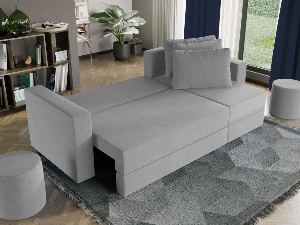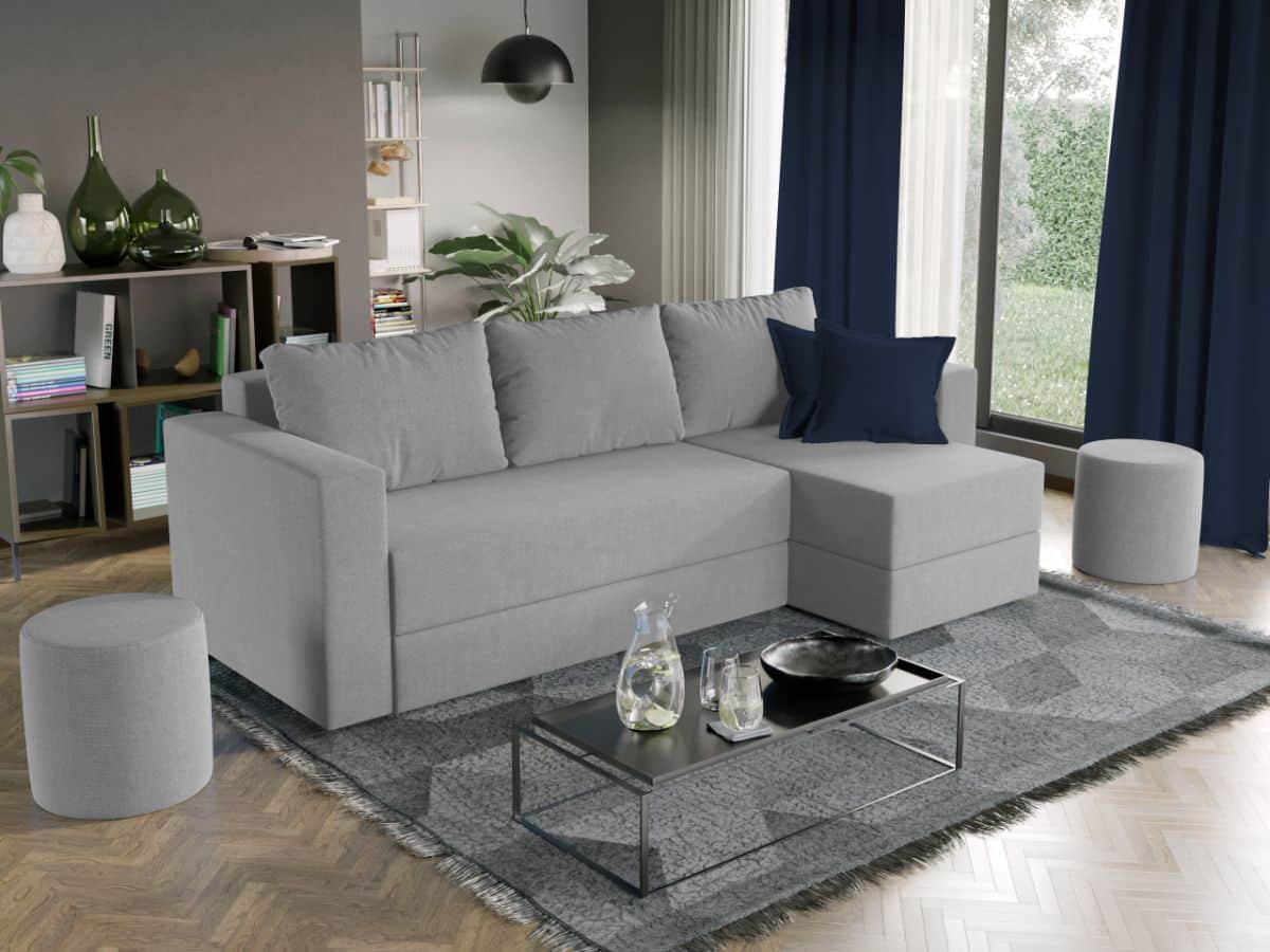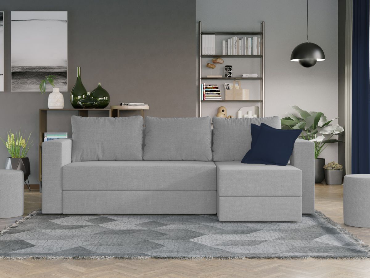 Oferta Coltar extensibil cu lada Alfa gri Profitati de oferta pentru Coltar extensibil cu lada Alfa gri , aveti urmatoarele beneficii: Fara surprize la livrare, este exact ca in pozele de prezentare Livrare gratuita si rapida, 4-10 zile lucratoare prin curier Suntem producatori de tapiterii, fara intermediari Toate piesele de tapiterii au o garantie de 2 ani Atentie: Pretul afisat nu include alte accesorii sau obiecte de decor. Taburetele, pernele deco si draperiile se pot achizitiona optional. Puteti sa montati coltul pe ce parte doriti, pe stanga sau pe dreapta. Acest Coltar Extensibil cu lada pentru living are dimensiuni generoase, fiind potrivit pentru incaperi medii sau mari: 250 cm lungime, 140 cm latime, 85 cm inaltime totala . In plus, datorita posibilitatii de extindere, obtineti un spatiu pentru odihna si relaxare, cu suprafata utila 210 x 135 cm . Astfel, nu va mai ramane decat sa va relaxati si sa va bucurati de un somn odihnitor. Videoclipul poate contine alta nuanta decat cea de pe pagina produsului, acesta avand ca scop prezentarea familiei pentru a se reda in detaliu aspectul materialului. Dimensiunile coltarului Lungime: 250 cm Latime: 140 cm Lungime intre brate: 210 cm Lungime extins: 210 cm Adancime sezut fara perne: 78 cm Adancime sezut cu perne: 60 cm Adancime extins: 120 cm + 15 cm pe partea de canapea Inaltime cu perne: 85 cm Inaltime fara perne: 70 cm Inaltime sezut: 44 cm Coltar extensibil cu lada Alfa gri Sezutul si extensia canapelei sunt pe relaxa (arcuri elicoidale și poliuretan) . Ofera fermitatea optima, dar si confortul dorit. Lada incorporata este ideala pentru depozitarea lenjeriei, a pernelor sau a paturii, pentru a pastra la indemana toate articolele frecvent utilizate. Scheletul este rezistent realizat pe structura solida. Avem incredere in imaginatia dvs. in materie de mobilier. Modern, incapator si comod, coltarul extensibil cu lada Alfa gri poate fi inconjurat de multe stiluri de mobila. Coltarul este extensibil si se transforma rapid intr-un pat de doua persoane de 210 x 135 cm. DESCARCA SCHITA DE MONTAJ
