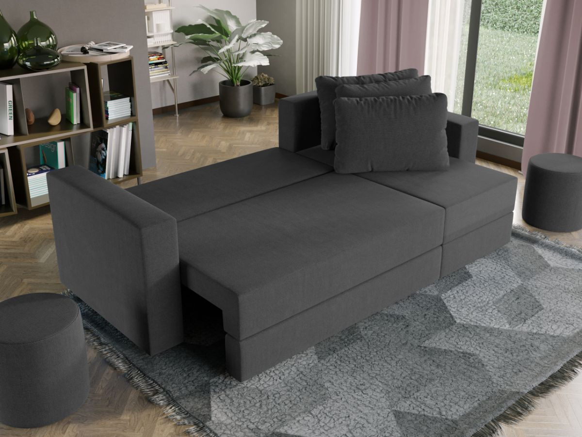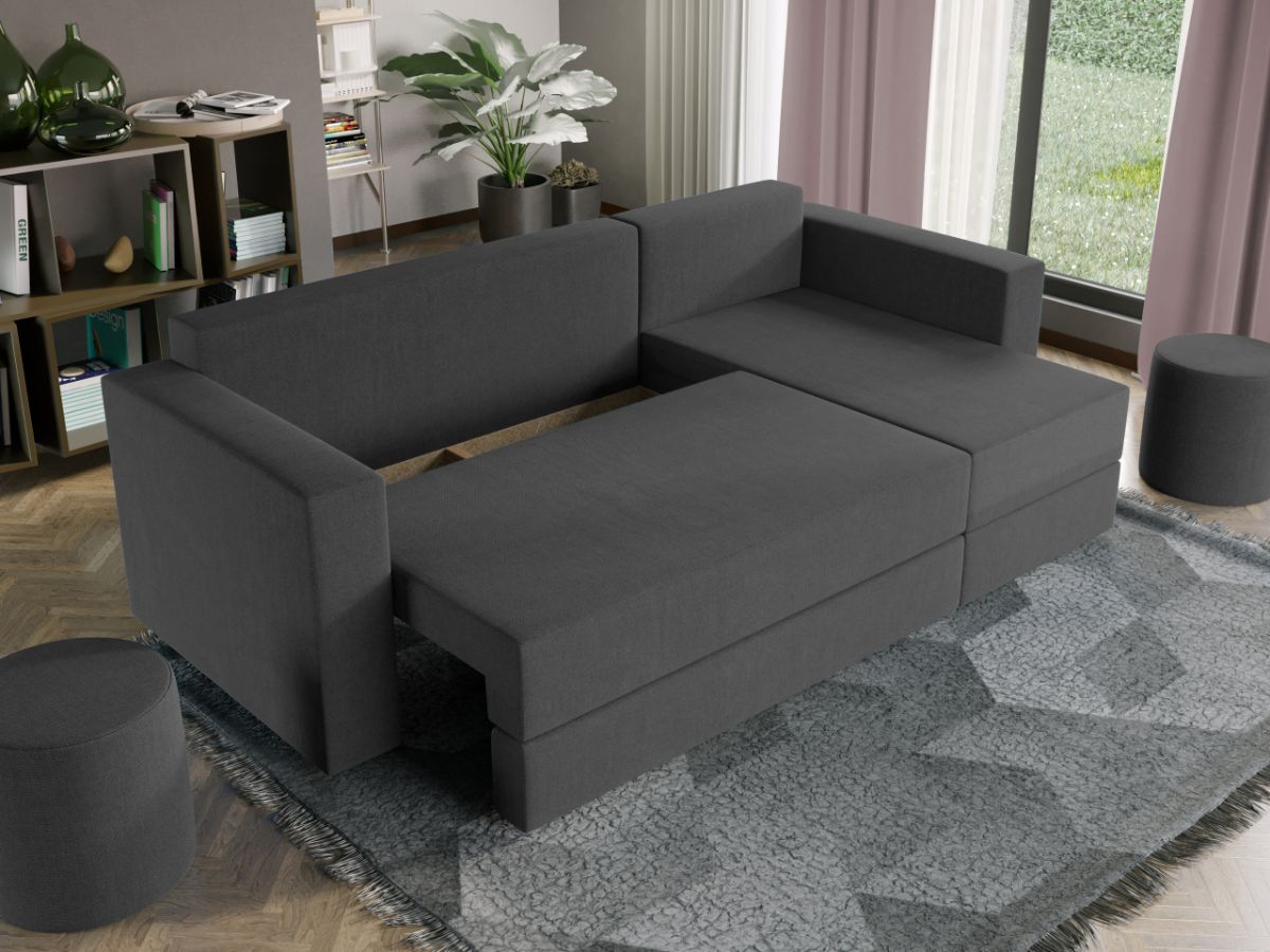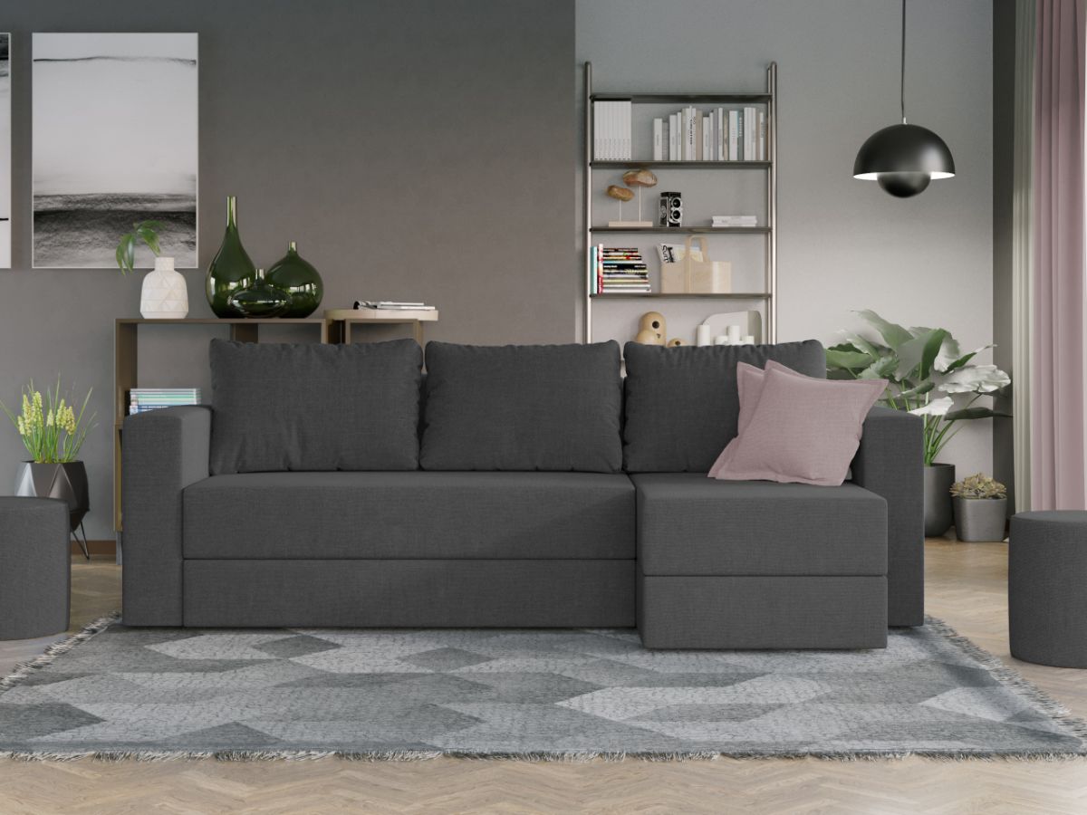 Oferta Coltar extensibil cu lada Alfa gri inchis Profitati de oferta pentru Coltar extensibil cu lada Alfa gri inchis , aveti urmatoarele beneficii: Fara surprize la livrare, este exact ca in pozele de prezentare Livrare gratuita si rapida, 4-10 zile lucratoare prin curier Suntem producatori de tapiterii, fara intermediari Toate piesele de tapiterii au o garantie de 2 ani Atentie: Pretul afisat nu include alte accesorii sau obiecte de decor. Taburetele, pernele deco si draperiile se pot achizitiona optional. Puteti sa montati coltul pe ce parte doriti, pe stanga sau pe dreapta. Acest Coltar Extensibil cu lada pentru living are dimensiuni generoase, fiind potrivit pentru incaperi medii sau mari: 250 cm lungime, 140 cm latime, 85 cm inaltime totala . In plus, datorita posibilitatii de extindere, obtineti un spatiu pentru odihna si relaxare, cu suprafata utila 210 x 135 cm . Astfel, nu va mai ramane decat sa va relaxati si sa va bucurati de un somn odihnitor. Videoclipul poate contine alta nuanta decat cea de pe pagina produsului, acesta avand ca scop prezentarea familiei pentru a se reda in detaliu aspectul materialului. Dimensiunile coltarului Lungime: 250 cm Latime: 140 cm Lungime intre brate: 210 cm Lungime extins: 210 cm Adancime sezut fara perne: 78 cm Adancime sezut cu perne: 60 cm Adancime extins: 120 cm + 15 cm pe partea de canapea Inaltime cu perne: 85 cm Inaltime fara perne: 70 cm Inaltime sezut: 44 cm DESCARCA SCHITA DE MONTAJ Coltar extensibil cu lada Alfa gri inchis Sezutul si extensia canapelei sunt pe relaxa (arcuri elicoidale și poliuretan) . Ofera fermitatea optima, dar si confortul dorit. Lada incorporata este ideala pentru depozitarea lenjeriei, a pernelor sau a paturii, pentru a pastra la indemana toate articolele frecvent utilizate. Scheletul este rezistent realizat pe structura din lemn de fag. Avem incredere in imaginatia dvs. in materie de mobilier. Modern, incapator si comod, coltarul extensibil cu lada Alfa gri inchis poate fi inconjurat de multe stiluri de mobila. Coltarul este extensibil si se transforma rapid intr-un pat de doua persoane de 210 x 135 cm