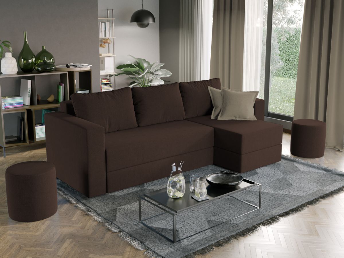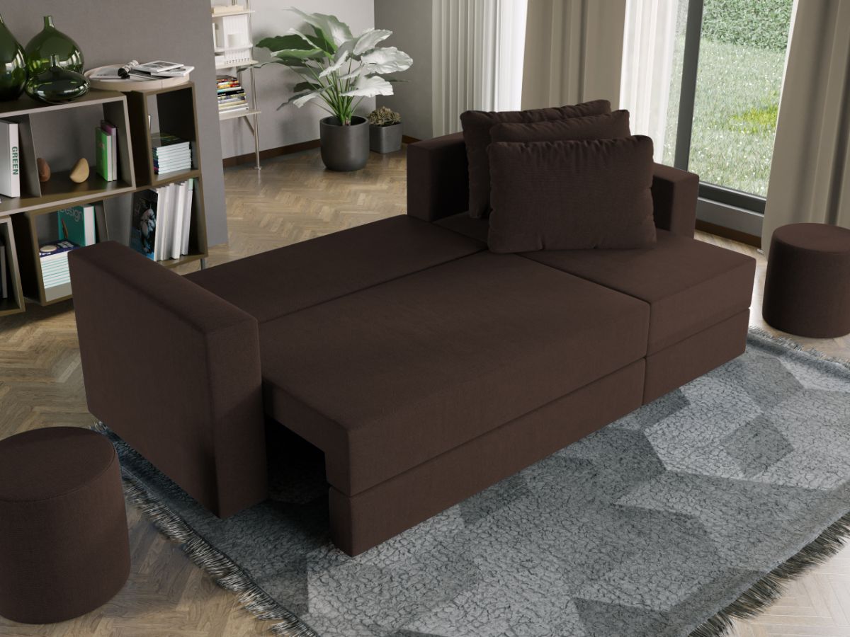 Oferta Coltar extensibil cu lada Alfa maro / aura 5 Profitati de oferta pentru Coltar extensibil cu lada Alfa maro / aura 5 , aveti urmatoarele beneficii: Fara surprize la livrare, este exact ca in pozele de prezentare Livrare gratuita si rapida, 4-10 zile lucratoare prin curier Suntem producatori de tapiterii, fara intermediari Toate piesele de tapiterii au o garantie de 2 ani Puteti sa montati coltul pe ce parte doriti, pe stanga sau pe dreapta. Atentie: Pretul afisat nu include alte accesorii sau obiecte de decor. Taburetele, pernele deco si draperiile se pot achizitiona optional. Acest Coltar Extensibil cu lada pentru living are dimensiuni generoase, fiind potrivit pentru incaperi medii sau mari: 250 cm lungime, 140 cm latime, 85 cm inaltime totala . In plus, datorita posibilitatii de extindere, obtineti un spatiu pentru odihna si relaxare, cu suprafata utila 210 x 135 cm . Astfel, nu va mai ramane decat sa va relaxati si sa va bucurati de un somn odihnitor. Dimensiunile coltarului Lungime: 250 cm Latime: 140 cm Lungime intre brate: 210 cm Lungime extins: 210 cm Adancime sezut fara perne: 78 cm Adancime sezut cu perne: 60 cm Adancime extins: 120 cm + 15 cm pe partea de canapea Inaltime cu perne: 85 cm Inaltime fara perne: 70 cm Inaltime sezut: 44 cm Coltar extensibil cu lada Alfa maro / aura 5 Sezutul si extensia canapelei sunt pe relaxa (arcuri elicoidale și poliuretan) . Ofera fermitatea optima, dar si confortul dorit. Lada incorporata este ideala pentru depozitarea lenjeriei, a pernelor sau a paturii, pentru a pastra la indemana toate articolele frecvent utilizate. Scheletul este rezistent realizat pe structura solida. Avem incredere in imaginatia dvs. in materie de mobilier. Modern, incapator si comod, coltarul extensibil cu lada Alfa maro / aura 5 poate fi inconjurat de multe stiluri de mobila. Coltarul este extensibil si se transforma rapid intr-un pat de doua persoane de 210 x 135 cm Tapiterie Coltar extensibil cu lada Alfa Tapiteria produsului este din stofa maro / aura 5, puteti vedea in poza alaturata o imagine de detaliu a materialului. Astfel nu aveti surprize de culoare la livrare. Nuanta acestui produs nu este pretentioasa, mascheaza eventualele evenimente neplacute prin care se poate murdari sau pata si se integreaza perfect in majoritatea locuintelor. Intretinere: se recomanda ca praful sa se stearga cu un material textil moale (finet) umed si sa nu se curete cu agenti chimici (diluant, acetona). Imaginile sunt cu titlu de prezentare si pot avea mici diferente de nuante in functie de display. Dimensiunile sunt exprimate în centimetri și pot oscila între ± 50 mm. DESCARCA SCHITA DE MONTAJ