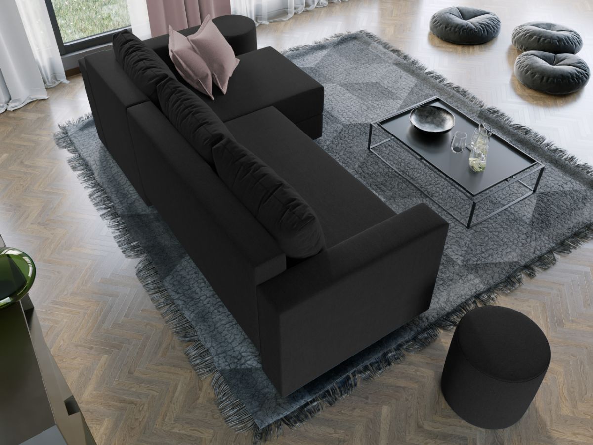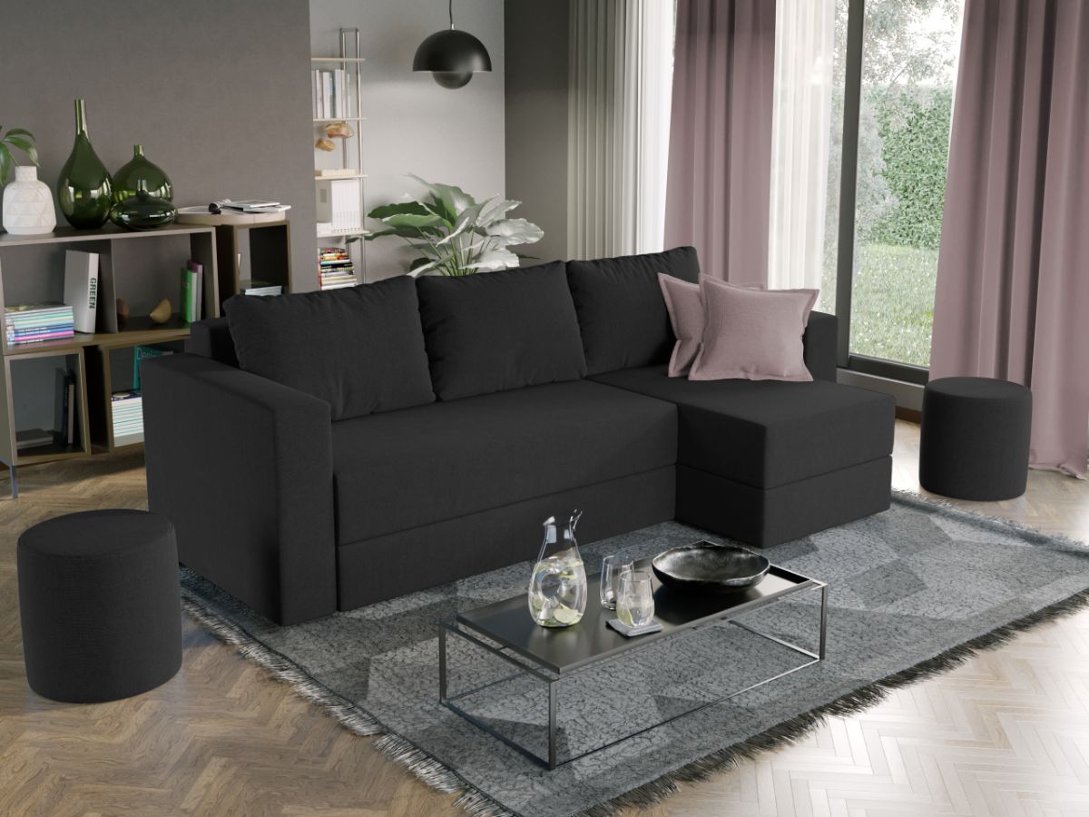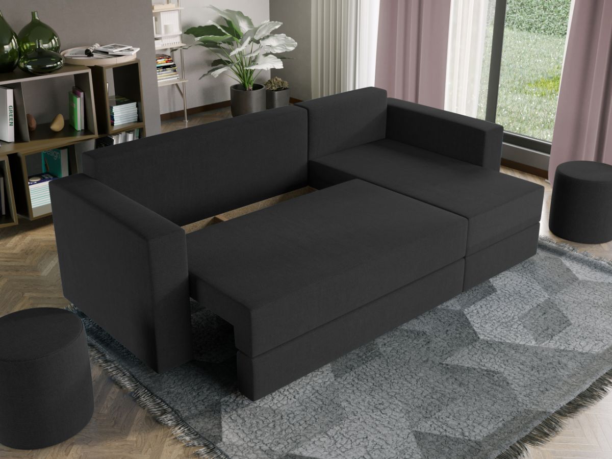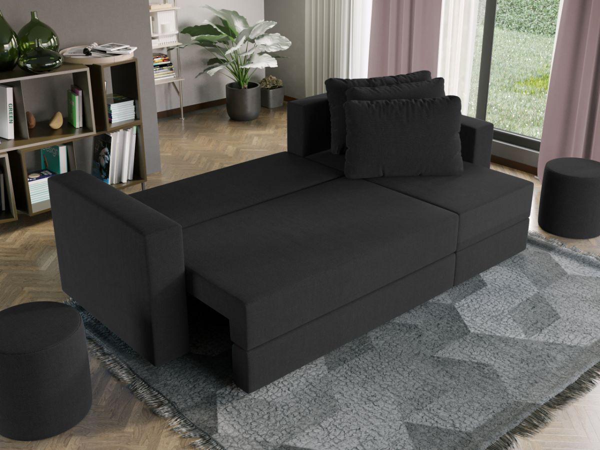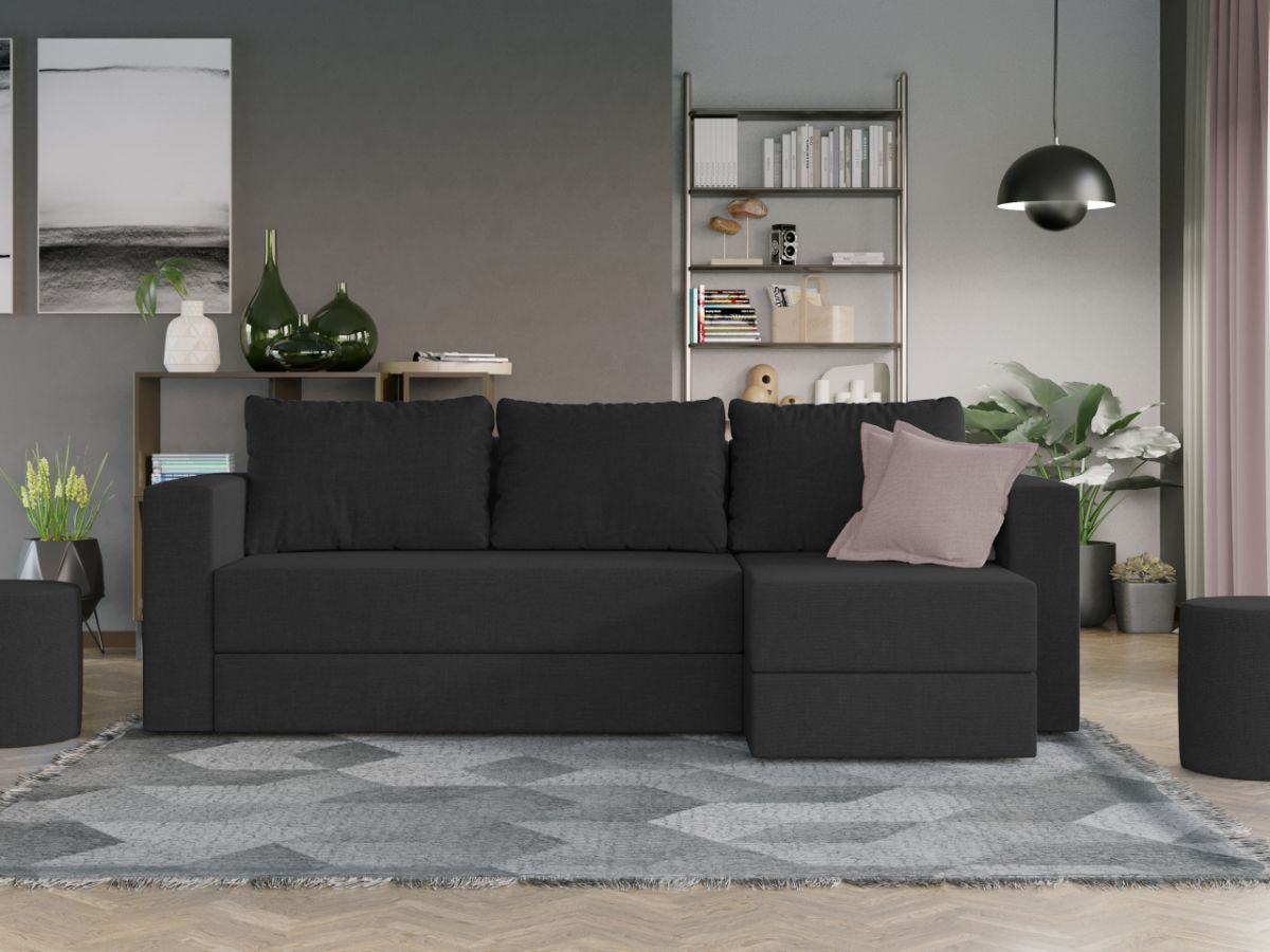 Oferta Coltar extensibil cu lada Alfa negru / aura 18 Profitati de oferta pentru Coltar extensibil cu lada Alfa negru / aura 18 , aveti urmatoarele beneficii: Fara surprize la livrare, este exact ca in pozele de prezentare Livrare gratuita si rapida, 4-10 zile lucratoare prin curier Suntem producatori de tapiterii, fara intermediari Toate piesele de tapiterii au o garantie de 2 ani Atentie: Pretul afisat nu include alte accesorii sau obiecte de decor. Taburetele, pernele deco si draperiile se pot achizitiona optional. Puteti sa montati coltul pe ce parte doriti, pe stanga sau pe dreapta. Acest Coltar Extensibil cu lada pentru living are dimensiuni generoase, fiind potrivit pentru incaperi medii sau mari: 250 cm lungime, 140 cm latime, 85 cm inaltime totala . In plus, datorita posibilitatii de extindere, obtineti un spatiu pentru odihna si relaxare, cu suprafata utila 210 x 135 cm . Astfel, nu va mai ramane decat sa va relaxati si sa va bucurati de un somn odihnitor. Videoclipul poate contine alta nuanta decat cea de pe pagina produsului, acesta avand ca scop prezentarea familiei pentru a se reda in detaliu aspectul materialului. Dimensiunile coltarului Lungime: 250 cm Latime: 140 cm Lungime intre brate: 210 cm Lungime extins: 210 cm Adancime sezut fara perne: 78 cm Adancime sezut cu perne: 60 cm Adancime extins: 120 cm + 15 cm pe partea de canapea Inaltime cu perne: 85 cm Inaltime fara perne: 70 cm Inaltime sezut: 44 cm Coltar extensibil cu lada Alfa negru / aura 18 Sezutul si extensia canapelei sunt pe relaxa (arcuri elicoidale și poliuretan) . Ofera fermitatea optima, dar si confortul dorit. Lada incorporata este ideala pentru depozitarea lenjeriei, a pernelor sau a paturii, pentru a pastra la indemana toate articolele frecvent utilizate. Scheletul este rezistent realizat pe structura solida. Avem incredere in imaginatia dvs. in materie de mobilier. Modern, incapator si comod, coltarul extensibil cu lada Alfa negru / aura 18 poate fi inconjurat de multe stiluri de mobila. Coltarul este extensibil si se transforma rapid intr-un pat de doua persoane de 210 x 135 cm Tapiterie Coltar extensibil cu lada Alfa Tapiteria produsului este din stofa negru / aura 18, puteti vedea in poza alaturata o imagine de detaliu a materialului. Astfel nu aveti surprize de culoare la livrare. Nuanta acestui produs nu este pretentioasa, mascheaza eventualele evenimente neplacute prin care se poate murdari sau pata si se integreaza perfect in majoritatea locuintelor. Intretinere: se recomanda ca praful sa se stearga cu un material textil moale (finet) umed si sa nu se curete cu agenti chimici (diluant, acetona). Imaginile sunt cu titlu de prezentare si pot avea mici diferente de nuante in functie de display. Dimensiunile sunt exprimate în centimetri și pot oscila între ± 50 mm. DESCARCA SCHITA DE MONTAJ