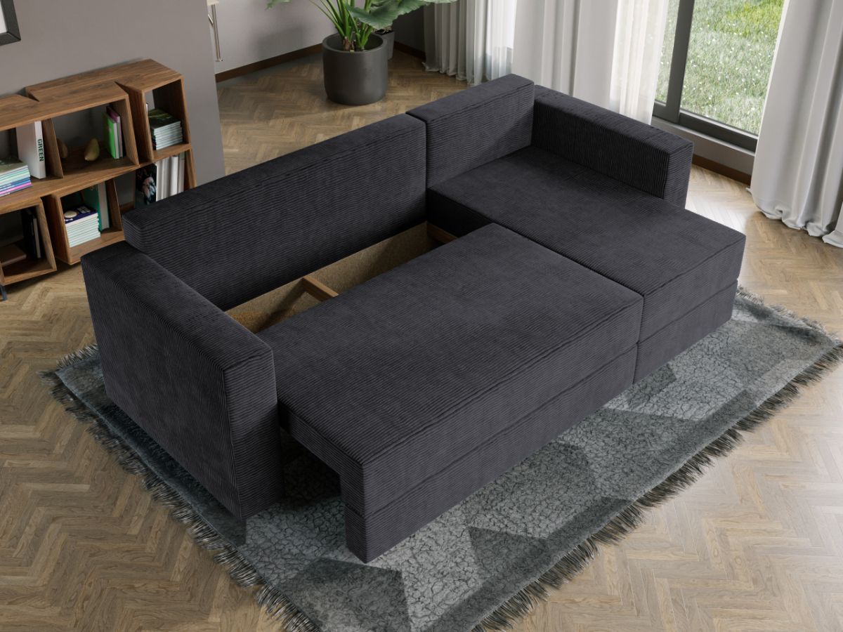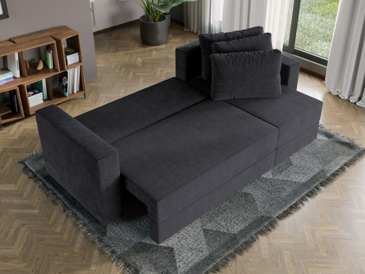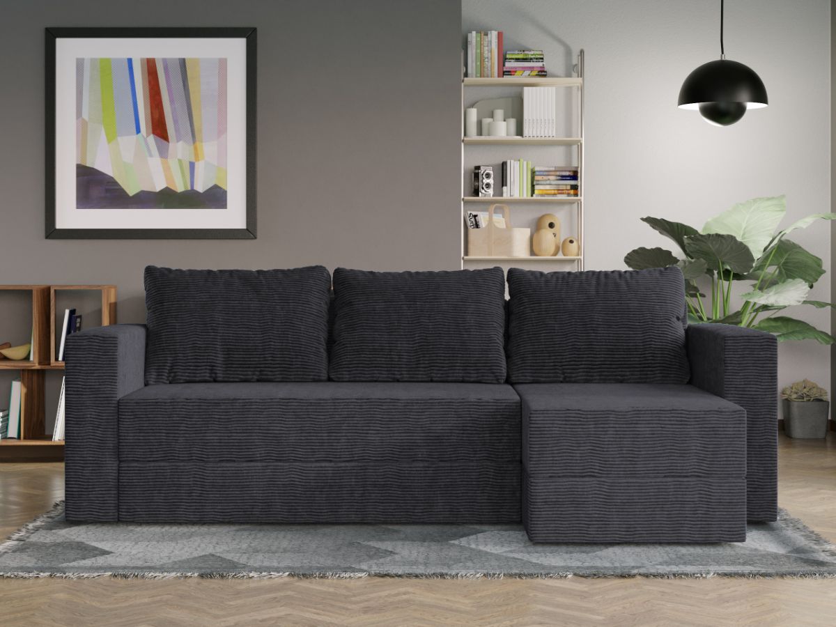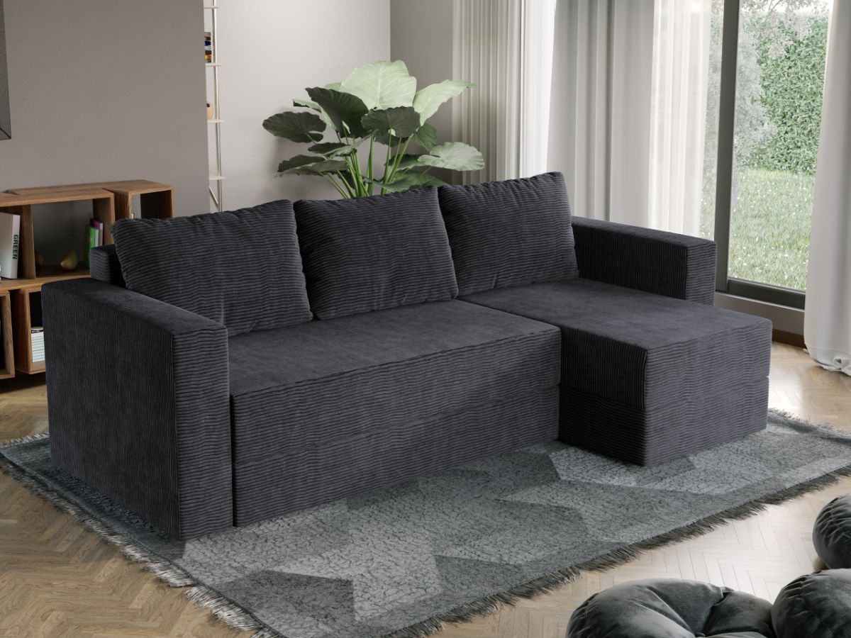 Oferta Coltar Extensibil Alfa reiat Zoom New 22 Profitati de oferta pentru Coltar Extensibil Alfa reiat Zoom New 22 , aveti urmatoarele beneficii: Fara surprize la livrare, este exact ca in pozele de prezentare Livrare gratuita si rapida, 4-10 zile lucratoare prin curier Suntem producatori de tapiterii, fara intermediari Toate piesele de tapiterii au o garantie de 2 ani Atentie:  Pretul afisat nu include alte accesorii sau obiecte de decor. Taburetele, pernele deco si draperiile se pot achizitiona optional. Puteti sa montati coltul pe ce parte doriti, pe stanga sau pe dreapta. Acest Coltar Extensibil Alfa reiat Zoom New 22 pentru living are dimensiuni generoase, fiind potrivit pentru incaperi medii sau mari: 250 cm lungime, 140 cm latime, 85 cm inaltime totala . In plus, datorita posibilitatii de extindere, obtineti un spatiu pentru odihna si relaxare, cu suprafata utila 210 x 135 cm . Astfel, nu va mai ramane decat sa va relaxati si sa va bucurati de un somn odihnitor. Videoclipul poate contine alta nuanta decat cea de pe pagina produsului, acesta avand ca scop prezentarea familiei pentru a se reda in detaliu aspectul produsului. Dimensiunile coltarului Lungime: 250 cm Latime: 140 cm Lungime intre brate: 210 cm Lungime extins: 210 cm Adancime sezut fara perne: 78 cm Adancime sezut cu perne: 60 cm Adancime extins: 120 cm + 15 cm pe partea de canapea Inaltime cu perne: 85 cm Inaltime fara perne: 70 cm Inaltime sezut: 44 cm Coltar Extensibil Alfa reiat Zoom New 22 Sezutul si extensia canapelei sunt pe relaxa (arcuri elicoidale și poliuretan) .  Ofera fermitatea optima, dar si confortul dorit. Lada incorporata este ideala pentru depozitarea lenjeriei, a pernelor sau a paturii, pentru a pastra la indemana toate articolele frecvent utilizate. Scheletul este rezistent realizat pe structura din lemn de fag. Avem incredere in imaginatia dvs. in materie de mobilier. Modern, incapator si comod, Coltar Extensibil Alfa reiat Zoom New 22 poate fi inconjurat de multe stiluri de mobila. Coltarul este extensibil si se transforma rapid intr-un pat de doua persoane de 210 x 135 cm. Tapiterie Coltar Extensibil Alfa reiat Zoom New 22 Tapiteria produsului este din stofa gri inchis . Astfel nu aveti surprize de culoare la livrare. Nuanta acestui produs nu este pretentioasa, mascheaza eventualele evenimente neplacute prin care se poate murdari sau pata si se integreaza perfect in majoritatea locuintelor. Intretinere: se recomanda ca praful sa se stearga cu un material textil moale (finet) umed si sa nu se curete cu agenti chimici (diluant, acetona). Imaginile sunt cu titlu de prezentare si pot avea mici diferente de nuante in functie de display. Dimensiunile sunt exprimate în centimetri și pot oscila între ± 50 mm. DESCARCA SCHITA DE MONTAJ