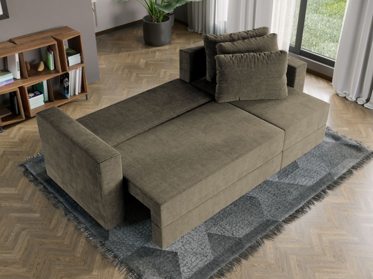 Oferta Coltar Extensibil Alfa reiat Zoom New 25 Profitati de oferta pentru Coltar Extensibil Alfa reiat Zoom New 25 , aveti urmatoarele beneficii: Fara surprize la livrare, este exact ca in pozele de prezentare Livrare gratuita si rapida, 4-10 zile lucratoare prin curier Suntem producatori de tapiterii, fara intermediari Toate piesele de tapiterii au o garantie de 2 ani Atentie: Pretul afisat nu include alte accesorii sau obiecte de decor. Taburetele, pernele deco si draperiile se pot achizitiona optional. Puteti sa montati coltul pe ce parte doriti, pe stanga sau pe dreapta. Acest Coltar Extensibil Alfa reiat Zoom New 25 pentru living are dimensiuni generoase, fiind potrivit pentru incaperi medii sau mari: 250 cm lungime, 140 cm latime, 85 cm inaltime totala . In plus, datorita posibilitatii de extindere, obtineti un spatiu pentru odihna si relaxare, cu suprafata utila 210 x 135 cm . Astfel, nu va mai ramane decat sa va relaxati si sa va bucurati de un somn odihnitor. Videoclipul poate contine alta nuanta decat cea de pe pagina produsului, acesta avand ca scop prezentarea familiei pentru a se reda in detaliu aspectul produsului. Dimensiunile coltarului Lungime: 250 cm Latime: 140 cm Lungime intre brate: 210 cm Lungime extins: 210 cm Adancime sezut fara perne: 78 cm Adancime sezut cu perne: 60 cm Adancime extins: 120 cm + 15 cm pe partea de canapea Inaltime cu perne: 85 cm Inaltime fara perne: 70 cm Inaltime sezut: 44 cm Coltar Extensibil Alfa reiat Zoom New 25 Sezutul si extensia canapelei sunt pe relaxa (arcuri elicoidale și poliuretan) . Ofera fermitatea optima, dar si confortul dorit. Lada incorporata este ideala pentru depozitarea lenjeriei, a pernelor sau a paturii, pentru a pastra la indemana toate articolele frecvent utilizate. Scheletul este rezistent realizat pe structura din lemn de fag. Avem incredere in imaginatia dvs. in materie de mobilier. Modern, incapator si comod, Coltar Extensibil Alfa reiat Zoom New 25 poate fi inconjurat de multe stiluri de mobila. Coltarul este extensibil si se transforma rapid intr-un pat de doua persoane de 210 x 135 cm. Tapiterie Coltar Extensibil Alfa reiat Zoom New 25 Tapiteria produsului este din stofa verde . Astfel nu aveti surprize de culoare la livrare. Nuanta acestui produs nu este pretentioasa, mascheaza eventualele evenimente neplacute prin care se poate murdari sau pata si se integreaza perfect in majoritatea locuintelor. Intretinere: se recomanda ca praful sa se stearga cu un material textil moale (finet) umed si sa nu se curete cu agenti chimici (diluant, acetona). Imaginile sunt cu titlu de prezentare si pot avea mici diferente de nuante in functie de display. Dimensiunile sunt exprimate în centimetri și pot oscila între ± 50 mm. DESCARCA SCHITA DE MONTAJ