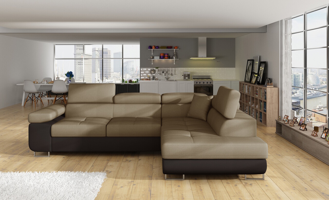 Coltar extensibil dreapta 4 locuri, ELTAP, Anton, 272x203x85 cm, lemn/poliester, maro/maro inchis