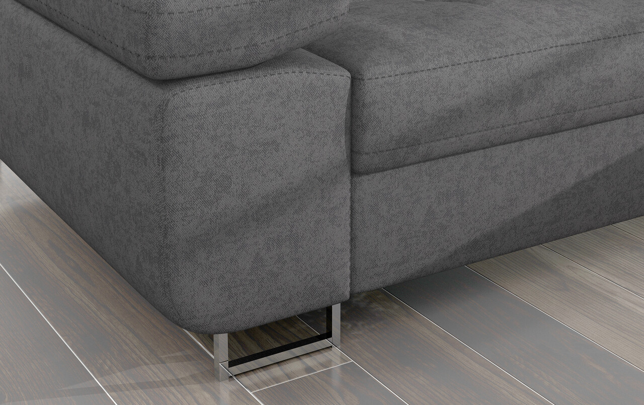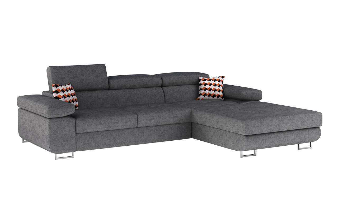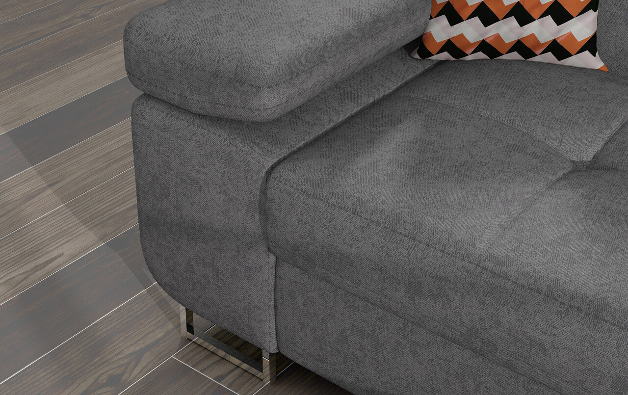 Armando este un coltar elegant si functional. Confortul ridicat al odihnei este sporit de cotierele largi, spatarul bine conturat si tetierele inalte reglabile. Sezutul spatiosului coltar este realizat din spuma T30 care garanteaza confort si rezistenta maxima. Coltarul in forma de L este echipat cu o functie de dormit si are o lada de depozitare spatioasa pentru asternuturi. Cu matlasare delicata, cusaturi elegante si picioare inalte, cromate, coltarul Armando se mentine intr-un stil modern de finisare. Este disponibil in mai multe versiuni de culoare. Merita sa aveti o astfel de piesa de mobilier in locuinta dumneavoastra.Compozitie materialMaterial tapiterie: 100% poliester (tesatura primara Gusto 88, tesatura secundara Zigzag 60).Material cadru: lemn de pinUmplutura sezut: spuma-T3030Umplutura spatar: spuma-T2130Perne decorative: 2Material perne: poliesterUmplutura perne: granule de spumaPicioare din metal de culoare argintie.Informatii suplimentareLungime sezut: 198 cmInaltime sezut: 44 cmAdancime sezut: 56 cmLungime picioare: 20 cmLatime picioare: 2 cmInaltime picioare: 9 cmSuprafata de dormit: 123×198 cmMecanism extindere tip delfin.Greutatea maxima suportata: 315 kgProdusul necesita asamblare, asamblat partial.