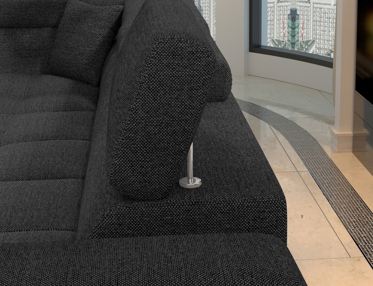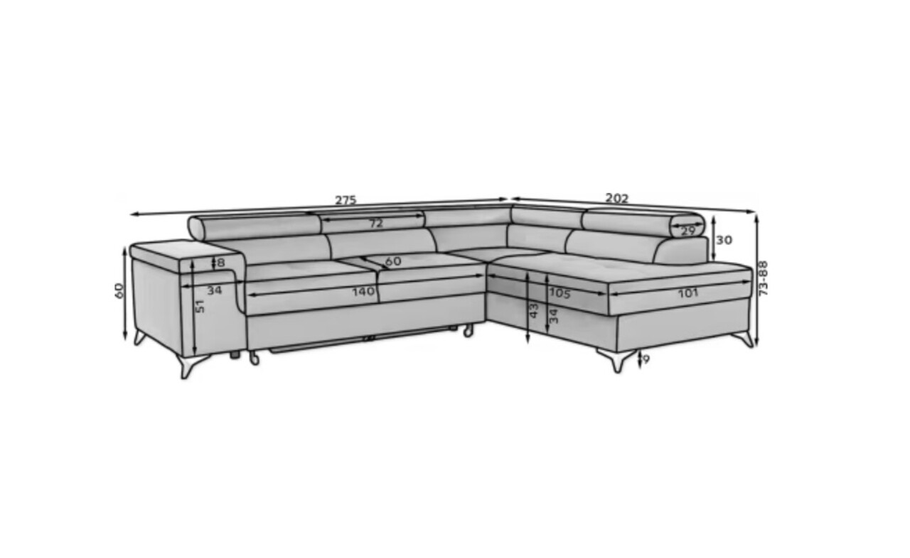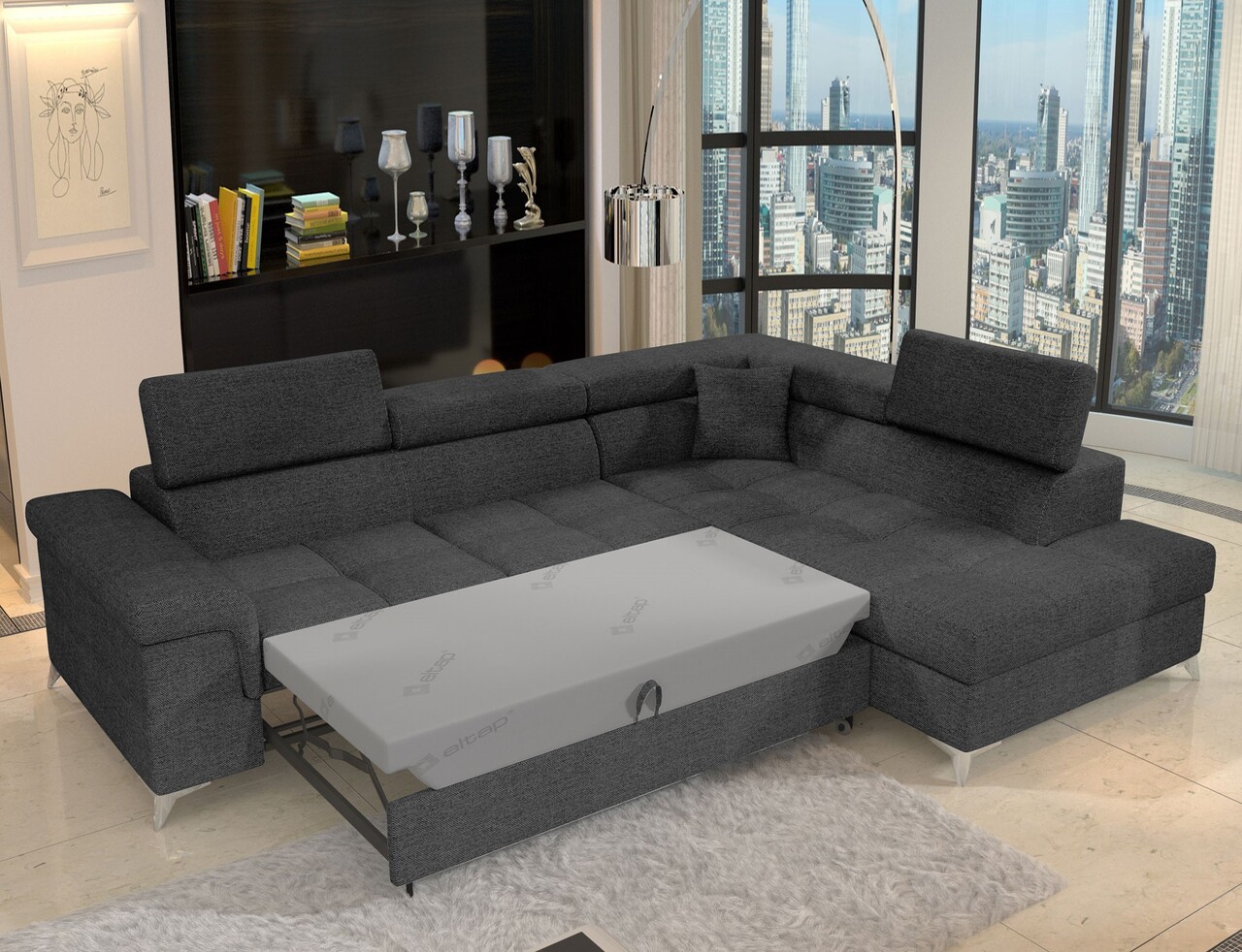 Eridano este un coltar multifunctional, confortabil si elegant in forma de L care poate fi un finisaj luxos pentru orice camera de zi. Este o piesa de mobilier de inalta calitate si ofera confort si clasa. Datorita sezutului larg cu o adancime de 60 cm si a umpluturii solide constituita din arcul ondulat impreuna cu spuma T30, precum si spuma flexibila HR de inalta calitate confera efectul unei elasticitati exceptionale, sustinand in acelasi timp corpul in timpul odihnei. Coltarul Eridano ofera nu numai confort, ci si un somn bun datorita zonei de dormit foarte mari. Mecanismul de extindere de tip delfin permite o aranjare simpla si intuitiva si astfel se transforma intr-un pat spatios. In plus, coltarul nostru este, de asemenea, echipat cu o lada de depozitare practica si spatioasa pentru asternuturi. Caracteristicile acestui model includ o cotiera larga, un spatar tapitat, un spatar conturat cu tetiere mobile, metal, picioare inalte, cromate, precum si o multitudine de variante in culori bogate.Compozitie materialMaterial tapiterie: 100% poliester (tesatura primara Inari 96).Material cadru: lemn de pinUmplutura sezut: spuma de inalta calitate HR+T3030Perne decorative incluse: 1Material perne: poliesterUmplutura perne: spumaUmplutura spatar: spuma-T2130Picioare din metal de culoare argintie.Informatii suplimentareInaltime sezut: 43 cmAdancime sezut: 60 cmInaltime picioare: 9 cmGreutatea maxima suportata: 315 kgMecanism extindere tip delfin.Suprafata de dormit: 123×193 cmProdusul necesita asamblare, asamblat partial.