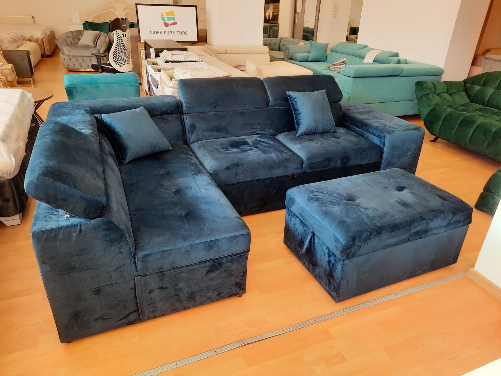 Coltarul Fendy este un coltar extensibil, cadrul este din lemn,tapitat catifea cularea albastru inchis sidefat.Tonalitatea culorii poate diferentia din cauza contrastului. Tertierele sunt reglabile. Are inclus 2 tambureti si o lada detasabila de depozitare. Dimensiuni lada de depozitare: 90 cm lungime, latime 60 cm,inaltime 18 cm. Dimensiuni coltar: 295 cm lungime, latime 195 cm ,…