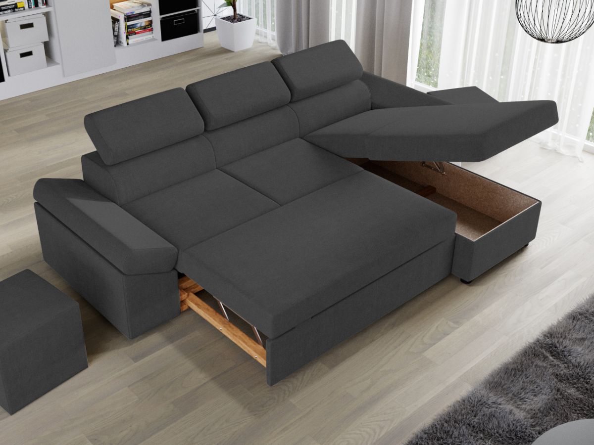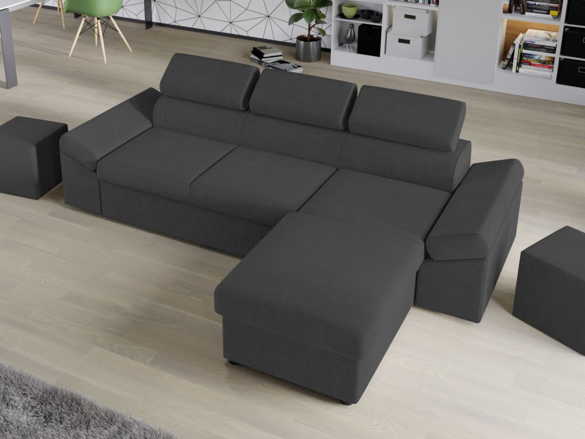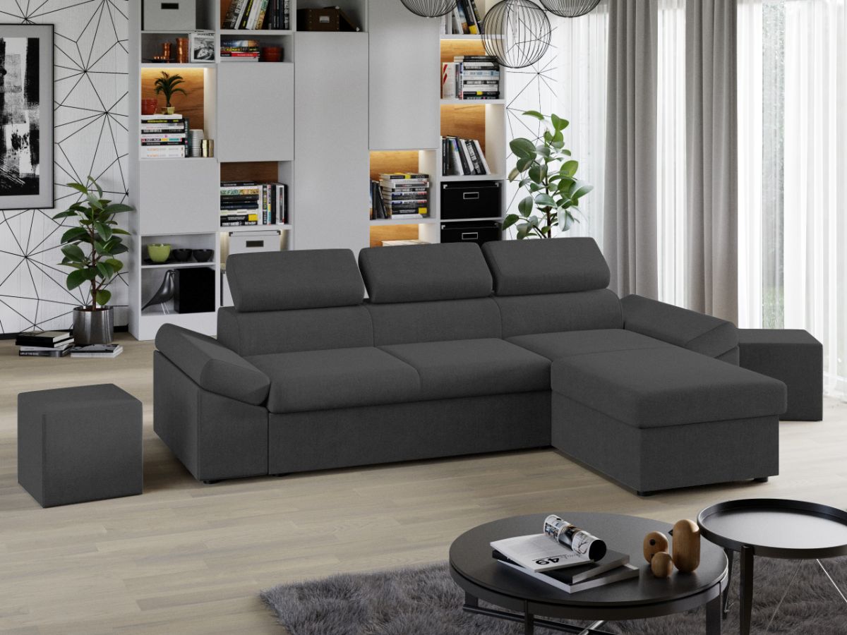 Coltar Extensibil Jamaica Gri Inchis Coltar Extensibil Jamaica Gri Inchis este un model confortabil si incapator, caracterizat de forme moderne si simple. Se transforma rapid intr-un pat confortabil de 200 x 138 cm . Lada incorporata este ideala pentru depozitarea lenjeriei, a pernelor sau a paturii, pentru a pastra la indemana toate articolele frecvent utilizate. Poti avea parte de relaxare completa si un confort sporit, gratie tetierelor reglabile , care ofera sustinere corpului tau exact in pozitia dorita. Este potrivit pentru un living cu dimensiuni generoase, avand dimensiunea de: 273 cm lungime, 173 cm latime, 72 cm inaltime totala . Este tapitat cu stofa de calitate pe diverse culori. Atentie: Pretul afisat nu include alte accesorii sau obiecte de decor. Taburetele, pernele deco si draperiile se pot achizitiona optional. Livrare gratuita si rapida, 4-10 zile lucratoare prin flota proprie Suntem producatori de tapiterii, fara intermediari Toate piesele de tapiterii au o garantie de 2 ani Sezutul contine arcuri elicoidale, arc sinusoidal si poliuretan, iar extensia este realizata din poliuretan . Scheletul este rezistent, realizat pe structura solida de fag si pal . Extensia de tip sertar este pozitionata sub sezutul coltarului. Se deschide ca un sertar, apoi se ridica salteaua din interiorul acestuia. Coltar Extensibil Jamaica Gri Inchis se incadreaza cu usurinta in majoritatea locuintelor indiferent de stilul acestora. Puteti alege din mai multe culori pentru stofa. Produsele disponibile le puteti vedea aici Modele Jamaica . Puteti sa montati coltul pe ce parte doriti, pe stanga sau pe dreapta. Video de prezentare coltar Videoclipul de prezentare este pentru stofa gri. Scopul acestui video este de a detalia cusaturile, structura si aspectul real al coltarului. Stofa difera in functie de alegerea facuta. Dimensiuni Coltar Extensibil Jamaica Gri Inchis Lungime: 273 cm Latime: 173 cm Lungime intre brate: 200 cm Inaltime sezut: 45 cm Adancime sezut: 56 cm Inaltime cu tetiere: 72 cm Inaltime picioare: 3 cm Dimensiuni extinsa Lungime extinsa: 200 cm Adancime extinsa maxima: 138 cm Adancime extinsa partea de canapea: 123 cm Dimensiuni brate Inaltime brate: 60 cm Lungime brate: 90 cm Tapiterie Coltar Extensibil Jamaica Gri Inchis Tapiteria produsului este din stofa Gri Inchis. Nuanta acestui produs nu este pretentioasa, mascheaza eventualele evenimente neplacute prin care se poate murdari sau pata si se integreaza perfect in majoritatea locuintelor. Intretinere: se recomanda ca praful sa se stearga cu un material textil moale (finet) umed si sa nu se curete cu agenti chimici (diluant, acetona). Imaginile sunt cu titlu de prezentare si pot avea mici diferente de nuante in functie de display. Dimensiunile sunt exprimate în centimetri și pot oscila între ± 50 mm. DESCARCA SCHITA DE MONTAJ