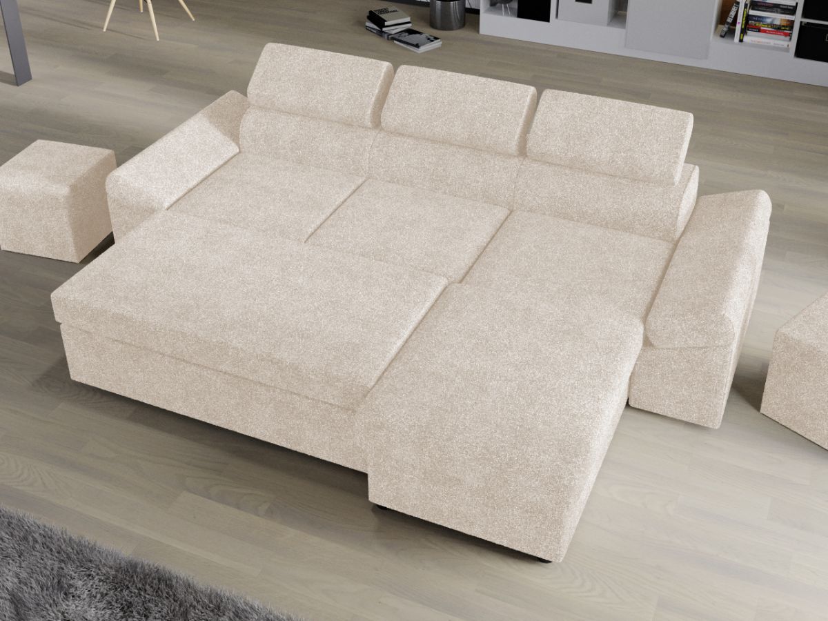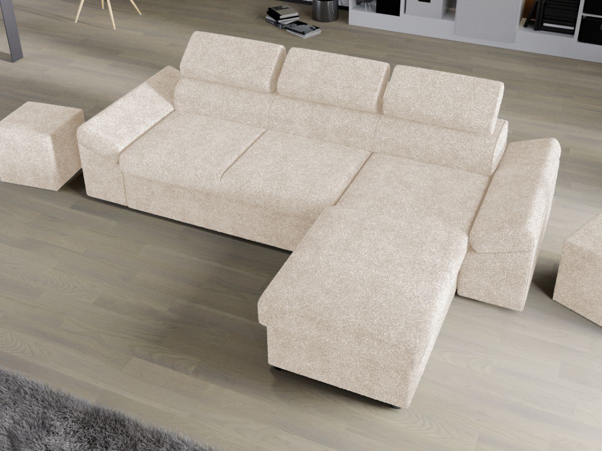 Coltar Extensibil Jamaica Plusat Crem Coltar Extensibil Jamaica Plusat Crem este un model confortabil si incapator, caracterizat de forme moderne si simple. Se transforma rapid intr-un pat confortabil de 200 x 138 cm . Lada incorporata este ideala pentru depozitarea lenjeriei, a pernelor sau a paturii, pentru a pastra la indemana toate articolele frecvent utilizate. Poti avea parte de relaxare completa si un confort sporit, gratie tetierelor reglabile , care ofera sustinere corpului tau exact in pozitia dorita. Este potrivit pentru un living cu dimensiuni generoase, avand dimensiunea de: 273 cm lungime, 173 cm latime, 72 cm inaltime totala . Este tapitat cu stofa de calitate pe diverse culori. Atentie: Pretul afisat nu include alte accesorii sau obiecte de decor. Taburetele, pernele deco si draperiile se pot achizitiona optional. Livrare gratuita si rapida, 4-10 zile lucratoare prin flota proprie Suntem producatori de tapiterii, fara intermediari Toate piesele de tapiterii au o garantie de 2 ani Sezutul contine arcuri elicoidale, arc sinusoidal si poliuretan, iar extensia este realizata din poliuretan . Scheletul este rezistent, realizat pe structura solida de fag si pal . Extensia de tip sertar este pozitionata sub sezutul coltarului. Se deschide ca un sertar, apoi se ridica salteaua din interiorul acestuia. Coltar Extensibil Jamaica Plusat Crem se incadreaza cu usurinta in majoritatea locuintelor indiferent de stilul acestora. Puteti alege din mai multe culori pentru stofa. Produsele disponibile le puteti vedea aici Modele Jamaica . Puteti sa montati coltul pe ce parte doriti, pe stanga sau pe dreapta. Video de prezentare coltar Videoclipul de prezentare este pentru stofa gri. Scopul acestui video este de a detalia cusaturile, structura si aspectul real al coltarului. Stofa difera in functie de alegerea facuta. Dimensiuni Coltar Extensibil Jamaica Plusat Crem Lungime: 273 cm Latime: 173 cm Lungime intre brate: 200 cm Inaltime sezut: 45 cm Adancime sezut: 56 cm Inaltime cu tetiere: 72 cm Inaltime picioare: 3 cm Dimensiuni extinsa Lungime extinsa: 200 cm Adancime extinsa maxima: 138 cm Adancime extinsa partea de canapea: 123 cm Dimensiuni brate Inaltime brate: 60 cm Lungime brate: 90 cm Tapiterie Coltar Extensibil Jamaica Plusat Crem Tapiteria produsului este din stofa plusata Crem. Nuanta acestui produs nu este pretentioasa, mascheaza eventualele evenimente neplacute prin care se poate murdari sau pata si se integreaza perfect in majoritatea locuintelor. Intretinere: se recomanda ca praful sa se stearga cu un material textil moale (finet) umed si sa nu se curete cu agenti chimici (diluant, acetona). Imaginile sunt cu titlu de prezentare si pot avea mici diferente de nuante in functie de display. Dimensiunile sunt exprimate în centimetri și pot oscila între ± 50 mm. DESCARCA SCHITA DE MONTAJ