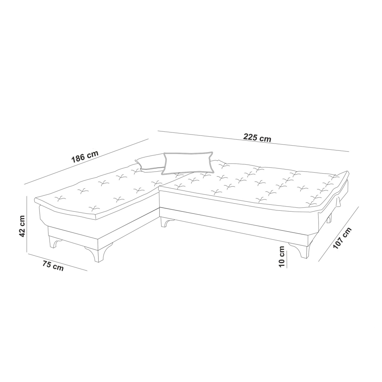 Descoperiți Colțarul Extensibil Kelebek Verde Marin Adăugați un strop de eleganță și confort în livingul dumneavoastră cu Colțarul Extensibil Kelebek într-o nuanță captivantă de verde marin . Acest colțar nu doar că impresionează prin designul său modern , dar este și extrem de funcțional, transformându-se rapid într-un pat confortabil. Fabricat din lemn de pin , acest colțar promite durabilitate și stabilitate . Tapitat cu țesătură SOHO 100% , vă oferă o textură plăcută la atingere , ideală pentru momentele de relaxare. Spuma cu densitate DNS de 28 asigură un confort superior, fie că stați jos sau vă întindeți pentru un somn odihnitor. Picioarele din plastic, cu o înălțime de 10 cm, adaugă un plus de eleganță și sunt concepute pentru a facilita curățarea ușoară a spațiului de sub colțar. Cu dimensiuni generoase și o structură bine gândită, acest colțar este o alegere excelentă pentru orice casă modernă. Detalii Tehnice: Material Cadru: Lemn de pin Țesătură: 100% SOHO Picioare: Plastic, 10 cm înălțime Densitate Spumă: 28 DNS Dimensiuni: Lățime: 225 cm, Înălțime: 86 cm, Adâncime: 160 cm Adâncime Scaun: 55 cm Înălțime Scaun: 47 cm Dimensiuni Pat: Lățime: 225 cm, Adâncime: 186 cm Număr Pachete: 2 Dimensiuni Pachete: 110 x 50 x 32 cm / 25 kg (1 Bucată), 77 x 188 x 32 cm / 18 kg (1 Bucată) Greutate Produs: 43 kg Alegeți Colțarul Extensibil Kelebek Verde Marin pentru un aspect elegant și confort maxim în casa dumneavoastră. Este soluția ideală pentru a economisi spațiu, oferind în același timp un loc de odihnă de calitate superioară . Această descriere este optimizată pentru SEO, folosind cuvinte cheie relevante și structurată în HTML pentru o integrare ușoară pe platformele de comerț online.