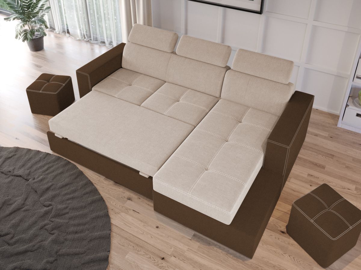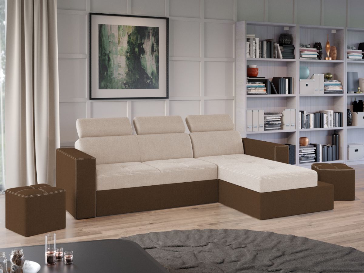 Coltar Paloma Crem / Maro Coltar Paloma Crem / Maro are un design modern, contemporan. Stilul imbina doua nuante de stofa, iar cusaturile contrastante ofera un aspect sofisticat. Tetierele, elementul surpriza al acestui coltar, pe langa aspectul aparte, au si un mecanism de reglare pe inaltime pentru un confort sporit. Se poate transforma intr-un pat confortabil in doar cateva minute si este prevazut cu lada pentru depozitare. Este recomandat atat pentru incaperi mici sau mari si are dimensiunea de: 245 cm lungime, 164 cm latime, 96 cm inaltime totala . Dupa extindere, obtineti un spatiu pentru odihna si relaxare, cu suprafata utila 203 x 125 cm . Este tapitat cu stofa de calitate pe diverse culori. Atentie: Pretul afisat nu include alte accesorii sau obiecte de decor. Taburetele, pernele deco si draperiile se pot achizitiona optional. Livrare gratuita si rapida, 4-10 zile lucratoare prin flota proprie Suntem producatori de tapiterii, fara intermediari Toate piesele de tapiterii au o garantie de 2 ani Sezutul este pe relaxa (arcuri elicoidale și poliuretan) si extensia este din poliuretan. Scheletul este rezistent, realizat pe structura solida de fag si pal. Extensia de tip sertar este pozitionata sub sezutul coltarului. Se deschide ca un sertar, apoi se ridica salteaua din interiorul acestuia. Coltar Paloma Crem / Maro se incadreaza cu usurinta in majoritatea locuintelor indiferent de stilul acestora. Puteti alege din mai multe culori pentru stofa. Produsele disponibile le puteti vedea aici Modele Paloma . Dimensiuni Coltar Paloma Crem / Maro Lungime: 245 cm Latime: 164 cm Lungime intre brate: 203 cm Inaltime sezut: 44 cm Adancime sezut: 56 cm Inaltime cu tetiere: 96 cm Inaltime fara tetiere: 70 cm Dimensiuni extinsa Lungime extinsa: 203 cm Adancime extinsa: 125 cm Dimensiuni brate Inaltime brate: 60 cm Lungime brate: 92 cm Tapiterie Coltar Paloma Crem / Maro Tapiteria produsului este din stofa Crem si Maro. Nuantele acestui produs nu sunt pretentioase, mascheaza eventualele evenimente neplacute prin care se pot murdari sau pata si se integreaza perfect in majoritatea locuintelor. Intretinere: se recomanda ca praful sa se stearga cu un material textil moale (finet) umed si sa nu se curete cu agenti chimici (diluant, acetona). Imaginile sunt cu titlu de prezentare si pot avea mici diferente de nuante in functie de display. Dimensiunile sunt exprimate în centimetri și pot oscila între ± 50 mm.