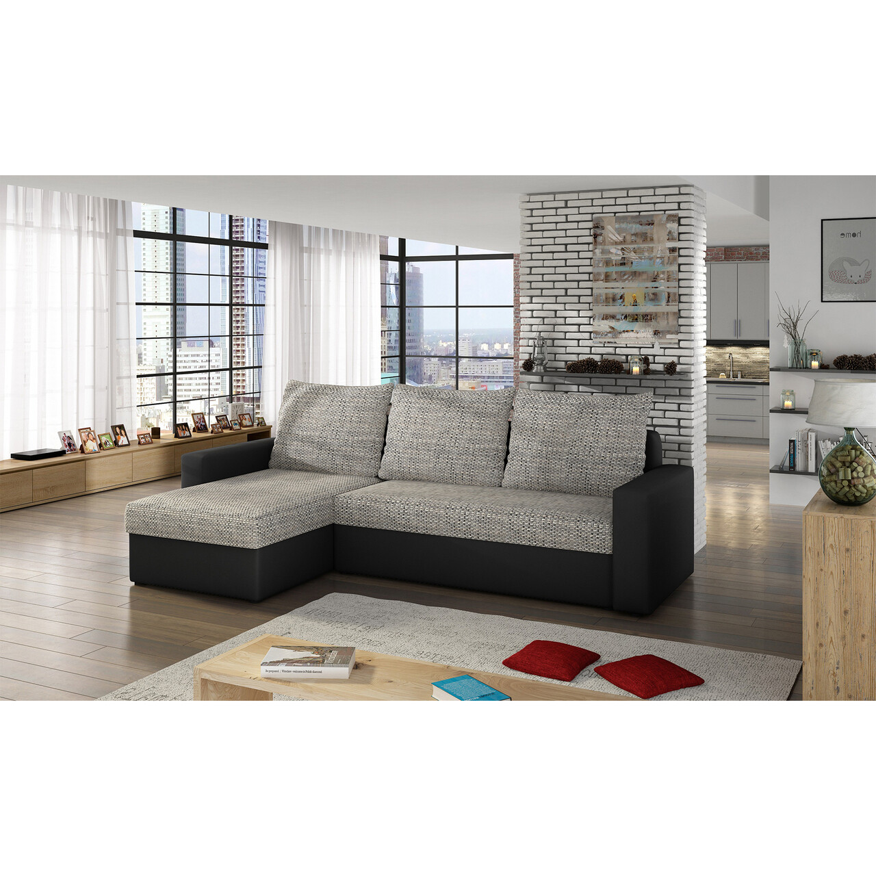 Livio este un coltar confortabil, simplu si, in acelasi timp, spatios. Este umplut cu spuma T3040 care este rezistenta la deformare si ofera confort maxim. Un avantaj suplimentar al coltarului este functia de dormit disponibila datorita mecanismului de extindere de tip DL. De asemenea, este prevazut cu lada de depozitare, ideala pentru depozitarea asternuturilor.Compozitie materialMaterial tapiterie: 100% poliester (tesatura primara Berlin 01, tesatura secundara Soft 11).Material cadru: lemn de pinUmplutura sezut: spuma-T3040Pentru un spatar mai confortabil au fost adaugate 3 perne detasabile.Umplutura perne: spumaMaterial perne: poliesterPicioare din plastic de culoare neagra.Informatii suplimentareLungime sezut: 195 cmInaltime sezut: 40 cmAdancime sezut: 57 cmMecanism extindere tip DL (se extrage sezutul si se pliaza spatarul).Suprafata de dormit: 125×195 cmGreutatea maxima suportata: 270 kgProdusul necesita asamblare, asamblat partial.