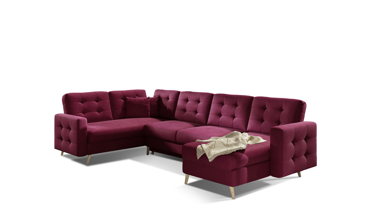 Coltarul Asgard U este spatios, confortabil si tapitat cu dimensiuni generoase. Este prevazut cu un sezut confortabil, moale, realizat din arcuri ondulate durabile, precum si spuma flexibila T30 care este rezistenta la deteriorare. Coltarul nostru este ideal datorita functiei de dormit si faptului ca are lada de depozitare spatioasa pentru asternuturi. Dupa extinderea cu ajutorul mecanismului de tip DL, obtinem un spatiu generos pentru odihna pe timp de noapte. Caracteristicile coltarului Asgard U includ: un sezut inalt, spatar tapitat, matlasare eleganta si cusaturi delicate situate pe spatarul si partile laterale ale coltarului. In plus, putem include si: picioare inalte, din lemn, si o multitudine de variante de culoare disponibile. Coltarul Asgard U este chintesenta confortului si a stilului bun care se va potrivi perfect in multe interioare.Compozitie materialMaterial tapiterie: 100% poliester (tesatura primara Mat Velvet 68).Material cadru: lemn de pinUmplutura sezut: spuma-T3030Pentru un spatar mai confortabil au fost adaugate 6 perne detasabile.Umplutura spatar: spuma-T2140Material perne: poliesterUmplutura perne: spumaPicioare din lemn de culoare sonoma.Informatii suplimentareInaltime sezut: 48 cmAdancime sezut: 52 cmLatime picioare: 3 cmInaltime picioare: 16 cmSuprafata de dormit: 120×282 cmMecanism extindere tip DL (se extrage sezutul si se pliaza spatarul).Greutatea maxima suportata: 360 kgProdusul necesita asamblare, asamblat partial.