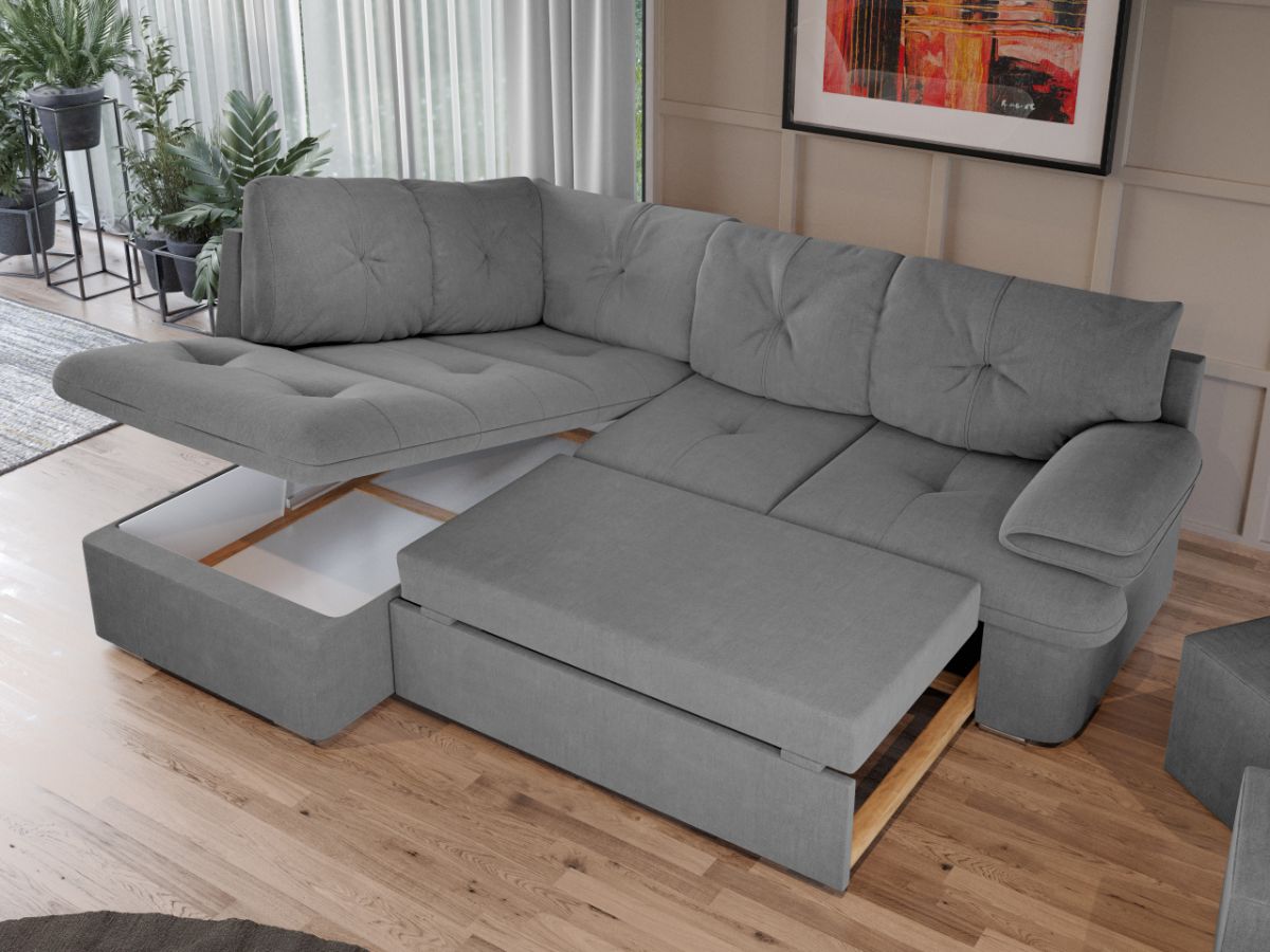 Coltar Roma Gri Deschis Coltar Roma Gri Deschis are un design modern si dimensiuni generoase. Pe langa nivelul de confort si relaxare pe care il ofera, acest coltar este alegerea potrivita pentru un living spatios. Se poate transforma intr-un pat in doar cateva minute si este prevazut cu lada pentru depozitare pozitionata sub sezlong, care poate fi accesata prin ridicarea partii superioare a acestuia. Coltarul are dimensiunea de: 245 cm lungime, 185 cm latime, 85 cm inaltime totala . Dupa extindere, obtineti un spatiu pentru odihna si relaxare, cu suprafata utila 180 x 130 cm . Este tapitat cu stofa de calitate pe diverse culori. Pernele nu sunt detasabile. Atentie: Pretul afisat nu include alte accesorii sau obiecte de decor. Taburetele, pernele deco si draperiile se pot achizitiona optional. Livrare gratuita si rapida, 4-10 zile lucratoare prin flota proprie Suntem producatori de tapiterii, fara intermediari Toate piesele de tapiterii au o garantie de 2 ani Sezutul si extensia coltarului sunt din poliuretan High Resilience . Scheletul este rezistent, realizat pe structura solida de fag si pal. Extensia de tip sertar este pozitionata sub sezutul coltarului. Se deschide ca un sertar, apoi se ridica salteaua din interiorul acestuia. Coltar Roma Gri Deschis se incadreaza cu usurinta in majoritatea locuintelor indiferent de stilul acestora. Puteti alege din mai multe culori pentru stofa. Produsele disponibile le puteti vedea aici Modele Roma . Dimensiuni Coltar Roma Lungime: 245 cm Latime: 185 cm Lungime intre brate: 180 cm Inaltime sezut: 43 cm Inaltime : 85 cm Adancime sezut: 60 cm Adancime selon 150 cm Latime sezlon 100 cm Dimensiuni extinsa Lungime extinsa: 180 cm Adancime extinsa: 130 cm Tapiterie Coltar Roma Gri Deschis Tapiteria produsului este din stofa Gri Deschis. Nuanta acestui produs nu este pretentioasa, mascheaza eventualele evenimente neplacute prin care se poate murdari sau pata si se integreaza perfect in majoritatea locuintelor. Intretinere: se recomanda ca praful sa se stearga cu un material textil moale (finet) umed si sa nu se curete cu agenti chimici (diluant, acetona). Imaginile sunt cu titlu de prezentare si pot avea mici diferente de nuante in functie de display. Dimensiunile sunt exprimate în centimetri și pot oscila între ± 50 mm.