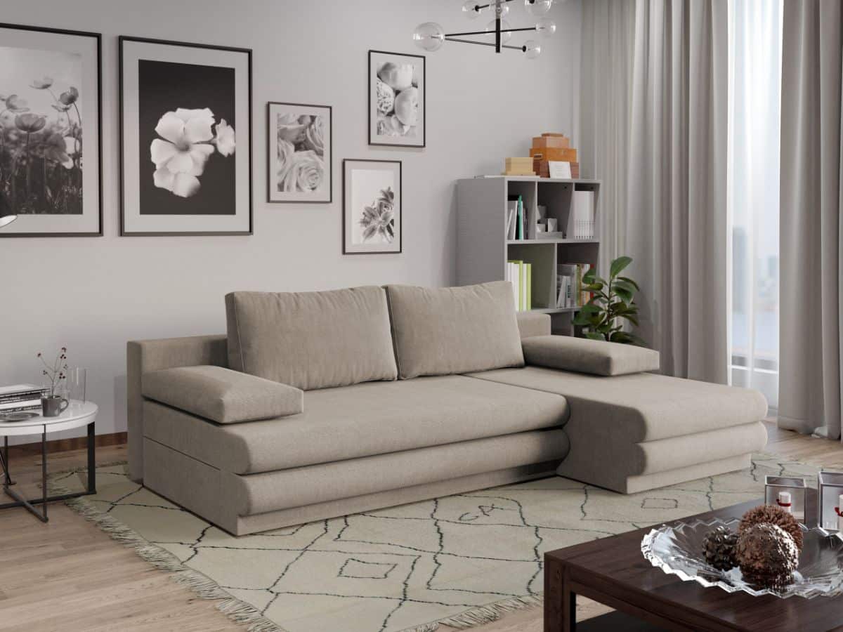 Coltar Extensibil Sensi Crem Coltar Extensibil Sensi Crem este o piesa de mobilier moderna, ideala pentru orice camera de zi si are un pret accesibil. Acesta adauga un plus de rafinament si confort in orice incapere. Formele sale rotunjite ofera un design elegant, iar cele doua perne si bratele laterale detasabile ofera sustinere corpului exact in pozitia dorita. Datorita posibilitatii de extindere , obtineti un spatiu pentru odihna si relaxare, cu o suprafata utila de 210 x 144 cm . Este potrivit pentru un living cu dimensiuni mici si medii, avand dimensiunea de: 210 cm lungime, 144 cm latime, 80 cm inaltime totala . Este tapitat cu stofa de calitate pe diverse culori. Atentie: Pretul afisat nu include alte accesorii sau obiecte de decor. Taburetele, pernele deco si draperiile se pot achizitiona optional. Livrare gratuita si rapida, 4-10 zile lucratoare prin flota proprie Suntem producatori de tapiterii, fara intermediari Toate piesele de tapiterii au o garantie de 2 ani Sezutul si extensia coltarului sunt pe relaxa (arcuri elicoidale și poliuretan) . Scheletul este rezistent, realizat pe structura solida de fag si pal. Extensia este de tip Doppelliege, ce prezinta un sistem actionat prin role, astfel ca partea de sezut se trage si permite partii de spatar sa gliseze spre partea din fata si sa se pozitioneze orizontal. Coltar Extensibil Sensi Crem se incadreaza cu usurinta in majoritatea locuintelor indiferent de stilul acestora. Puteti alege din mai multe culori pentru stofa. Produsele disponibile le puteti vedea aici Modele Sensi . Video de prezentare coltar Videoclipul de prezentare este pentru stofa plusata aspect lana alba. Scopul acestui video este de a detalia cusaturile, structura si aspectul real al coltarului. Stofa difera in functie de alegerea facuta. Dimensiuni Coltar Extensibil Sensi Crem Lungime: 210 cm Latime: 144cm Inaltime cu perne: 80 cm Inaltime fara perne: 67 cm Lungime intre brate: 210 cm Inaltime sezut: 43 cm Adancime sezut cu perne: 60 cm Adancime sezut fara perne: 84 cm Inaltime picioare: 3 cm Dimensiuni extinsa Lungime extinsa: 210 cm Adancime extinsa: 144 cm Tapiterie Coltar Extensibil Sensi Crem Tapiteria produsului este din stofa Crem. Nuanta acestui produs nu este pretentioasa, mascheaza eventualele evenimente neplacute prin care se poate murdari sau pata si se integreaza perfect in majoritatea locuintelor. Intretinere: se recomanda ca praful sa se stearga cu un material textil moale (finet) umed si sa nu se curete cu agenti chimici (diluant, acetona). Imaginile sunt cu titlu de prezentare si pot avea mici diferente de nuante in functie de display. Dimensiunile sunt exprimate în centimetri și pot oscila între ± 50 mm. DESCARCA SCHITA DE MONTAJ