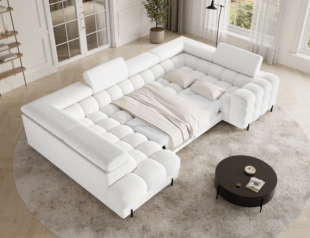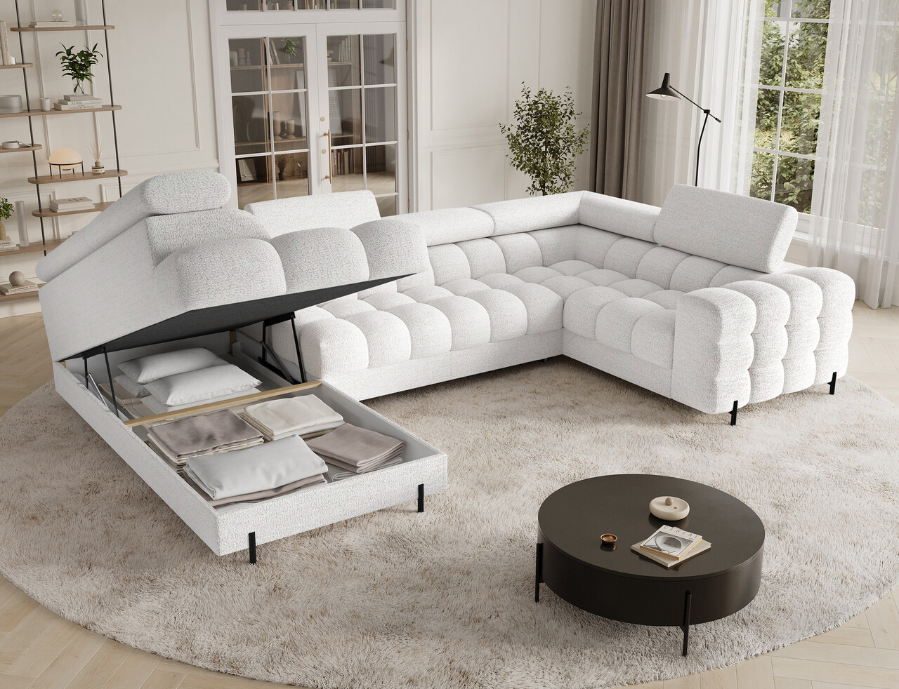 Coltarul Fectory in stil modern reprezinta o combinatie perfecta intre functionalitate si estetica. Echipat cu arcuri ondulate de tip B si un strat dublu de spuma–T3030 si spuma profilata HR3030 ofera un confort ridicat atat pentru sedere, cat si pentru somn. Dispune de o functie practica de dormit si un spatiu generos de depozitare pentru lenjeria de pat, ideal pentru utilizarea zilnica. Spatarul tapitat permite amplasarea libera a mobilierului in orice loc al camerei. Picioarele elegante din metal vopsite in negru prin pulverizare completeaza designul si confera coltarului lejeritate si un caracter modern. Coltarul Fectory este alegerea stilata si functionala pentru cei care cauta o piesa de mobilier spatioasa si confortabila, cu functii suplimentare.Compozitie materialMaterial tapiterie: 100% poliester (tesatura primara Royal 01).Material cadru: lemn de pinUmplutura sezut: arc ondulat de tip B, spuma T3030 + spuma HR3030Umplutura spatar: spuma T2130Picioare din metal de culoare neagra.Informatii suplimentareLungime sezut: 144 cmInaltime sezut: 44 cmAdancime sezut: 53 cmInaltime picioare: 9 cmMecanism extindere tip delfin.Suprafata de dormit: 123×247 cmDimensiuni lada depozitare: 180x82x17 cmGreutatea maxima suportata: 390 kgAutoasamblare