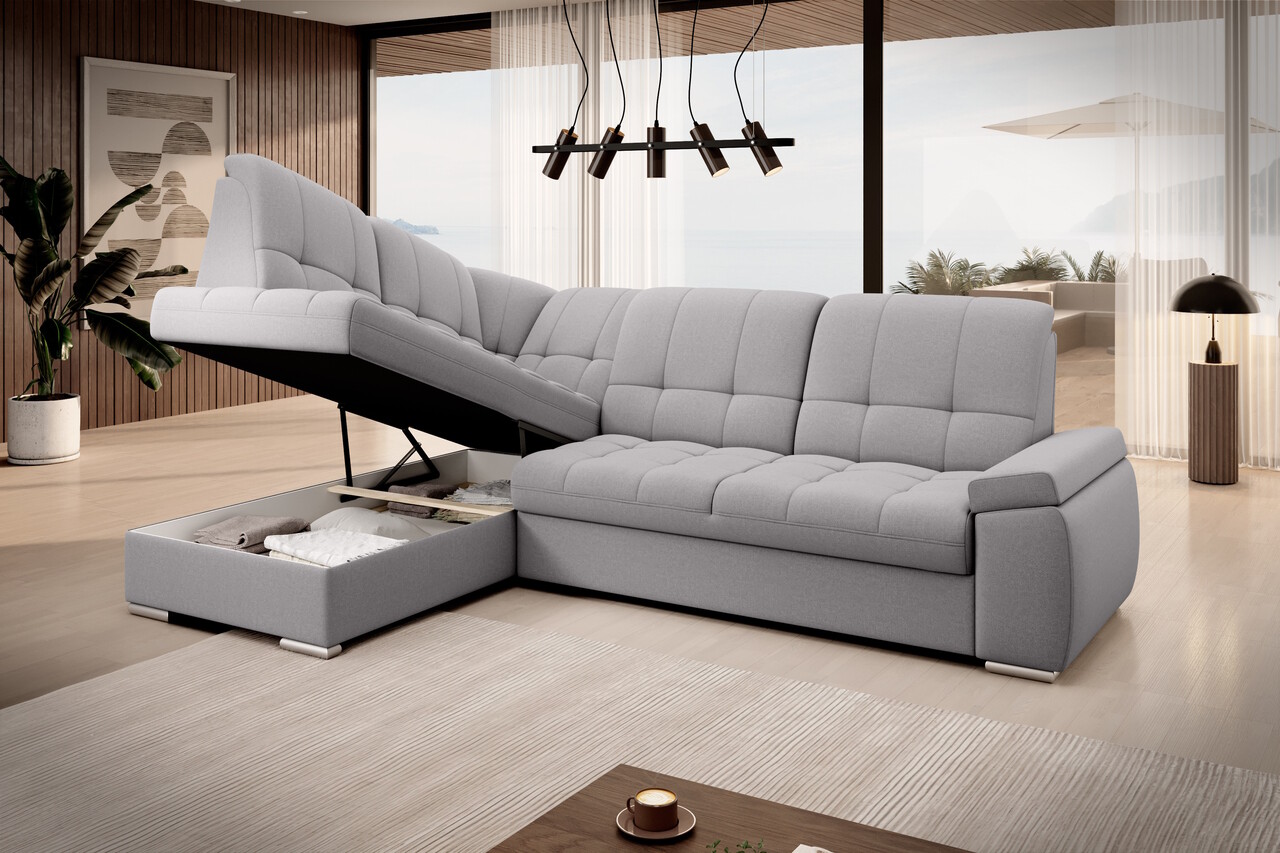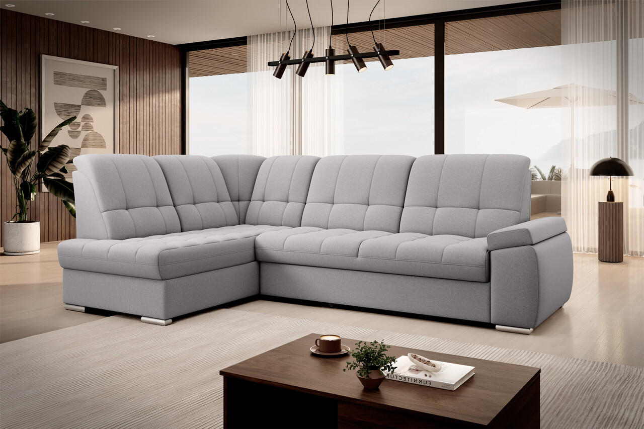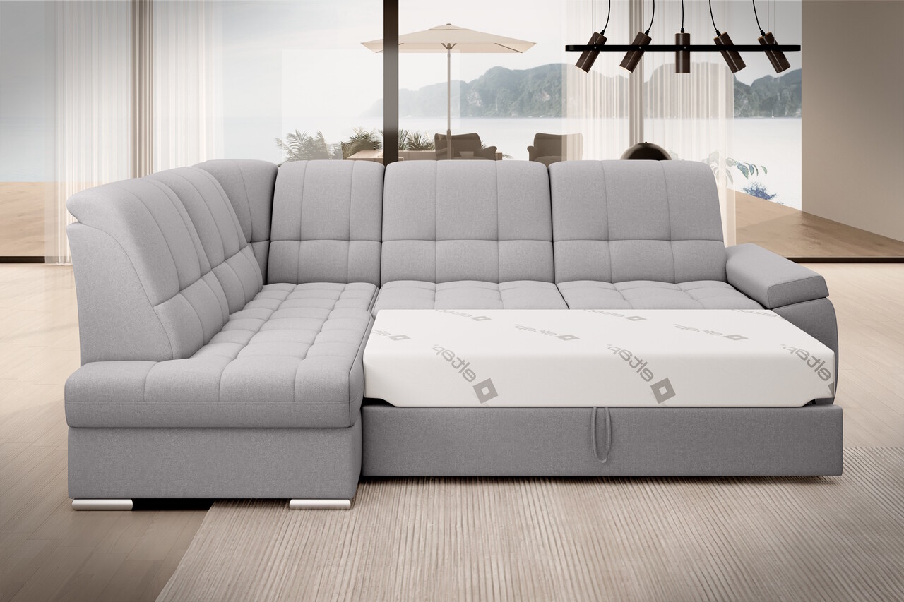 Coltarul Sado este conceput pentru o odihna confortabila. Perfect pentru proiectii de filme, perfect pentru citirea cartilor. Toate acestea datorita spatarului profilat cu functie de reglare. Mobilierul este, de asemenea, echipat cu o functie de dormit pliabila cu o suprafata generoasa, astfel incat, daca este necesar, puteti transforma cu usurinta coltarul Sado intr-un pat suplimentar. Un alt avantaj al coltarului este mecanismul foarte simplu si intuitiv de extindere de tip delfin. In plus, lada de depozitare se poate potrivi cu usurinta unui set de asternuturi. De asemenea, merita mentionata cotiera confortabila, profilata si picioarele elegante, argintii, din lemn, care vor fi perfecte pentru camerele de zi moderne. In plus, coltarul Sado este disponibil intr-o varietate de tesaturi din care puteti alege din colectia larga de tesaturi ELTAP.Compozitie materialMaterial tapiterie: 100% poliester (tesatura primara Gojo 4).Material cadru: lemn de pinUmplutura sezut: spuma-T30Spatarul este fix.Umplutura spatar: spuma T18Picioare din lemn de culoare argintie.Informatii suplimentareInaltime sezut: 41 cmAdancime sezut: 60 cmInaltime picioare: 4 cmGreutatea maxima suportata: 315 kgMecanism extindere tip delfin.Suprafata de dormit: 130×207 cmProdusul necesita asamblare, asamblat partial.