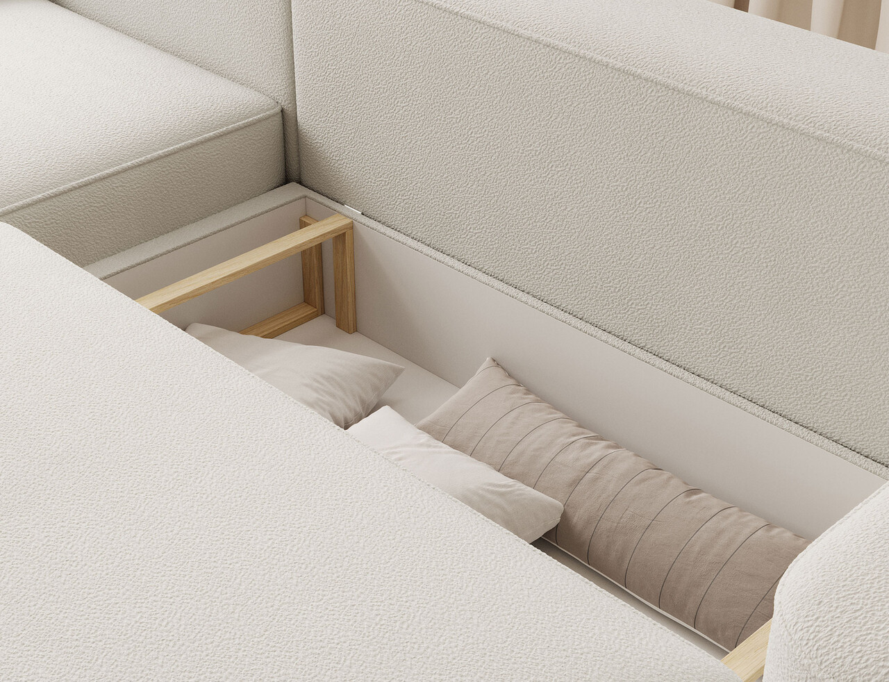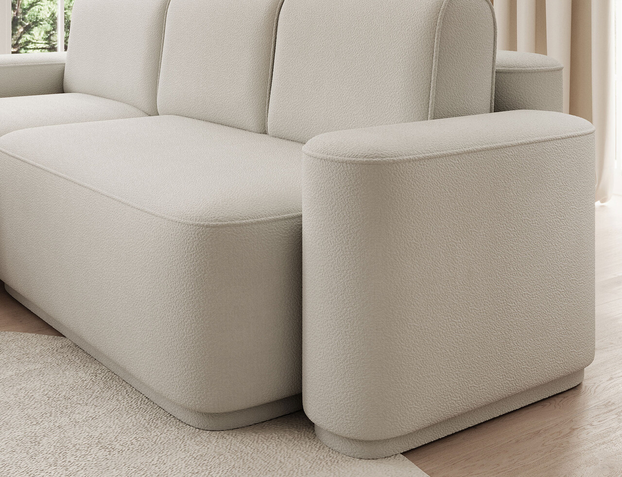 Coltar modern Aurumm cu design elegant este disponibil in trei grupe de tesaturi. Sezutul este realizat cu utilizarea arcurilor sinusoidale de tip B, spuma HR si spuma T2130, ceea ce garanteaza un confort ridicat in utilizare. Spatarul este umplut cu spuma poliuretanica T2540 si arc sinusoidal de tip B, oferind suport adecvat pentru spate. Coltarul Aurumm este echipat cu un spatiu practic pentru depozitarea lenjeriei de pat si un spatar tapitat, permitand amplasarea acestuia oriunde in living. Sistemul de extindere de tip DL permite coltarului sa se transforme cu usurinta intr-un loc confortabil de dormit.Compozitie materialMaterial tapiterie: 100% poliester (tesatura primara Amore 01).Material cadru: lemn de pinUmplutura sezut: spuma-HR+T2130Umplutura spatar: spuma poliuretanica T2540Material perne: poliesterUmplutura perne: granule de spumaPicioare din metal de culoare neagra.Informatii suplimentareInaltime sezut: 49 cmAdancime sezut: 60 cmInaltime picioare: 2.5 cmSuprafata de dormit: 135×231 cmDimensiuni lada depozitare: 120x62x18 cmMecanism extindere tip DL (se extrage sezutul si se pliaza spatarul).Greutatea maxima suportata: 300 kgProdusul necesita asamblare, asamblat partial.