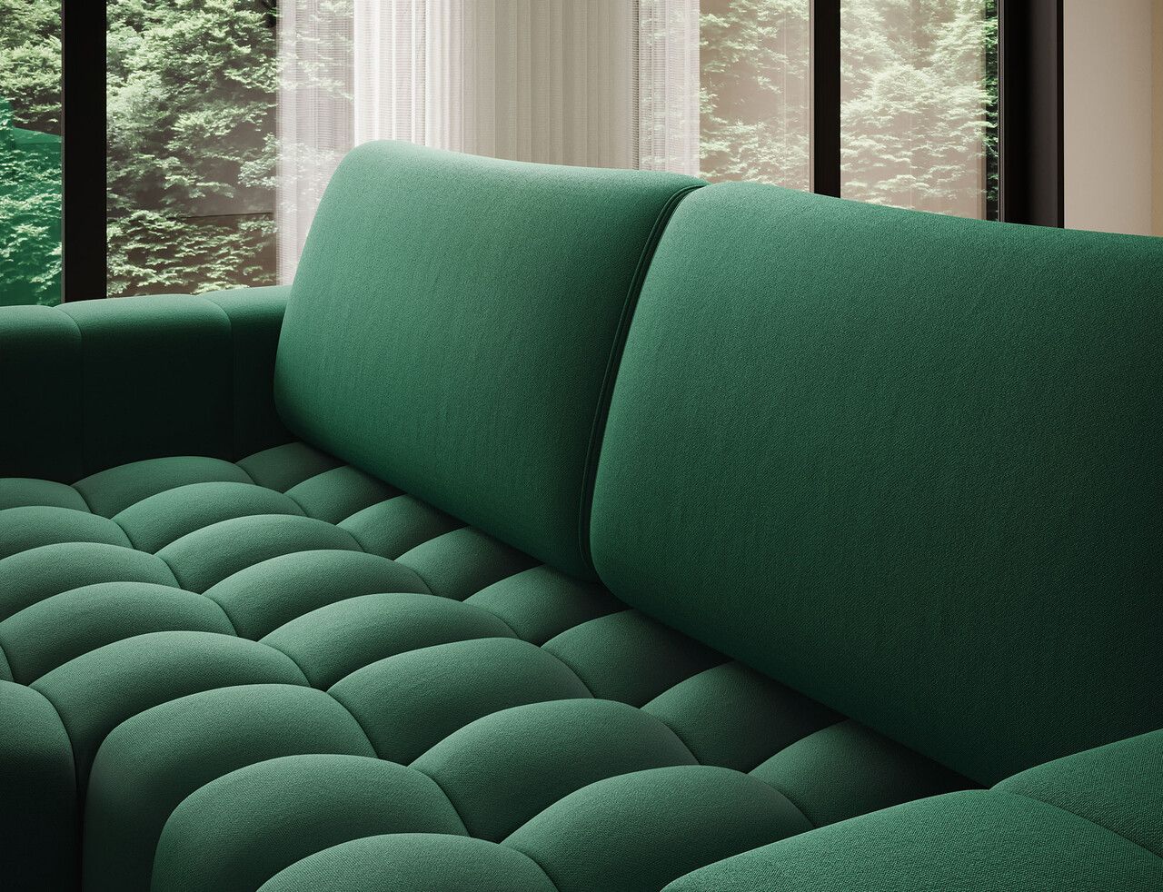 Bonett este un coltar original, de bun gust si extrem de moale care aduce o gura de prospetime si lux interiorului in care este amplasat. Garanteaza un confort maxim atat pentru odihna pe timp de zi, cat si pentru relaxare pe timp de noapte deoarece este prevazut cu o functie de extindere de tip DL. Alte facilitati includ un spatiu de depozitare pentru asternuturi, precum si un sezut confortabil din spuma T2130 si spuma HR care se adapteaza cel mai bine corpului nostru, chiar si atunci cand dormim. Coltarul Bonett este disponibil in intreaga gama de culori Eltap, ceea ce va ofera o multime de oportunitati de a alege mobilierul si de a aranja camera de zi dupa gustul dumneavoastra.Compozitie materialMaterial tapiterie: 100% poliester (tesatura primara Kronos 19).Material cadru: lemn de pinPicioare din plastic de culoare neagra.Pentru un spatar mai confortabil au fost adaugate 2 perne detasabile.Umplutura spatar: spuma T2540Umplutura perne: granule de spumaMaterial perne: poliesterPerne decorative incluse: 2Umplutura sezut: spuma-HR+T2130 Informatii suplimentareInaltime sezut: 40 cmAdancime sezut: 60 cmInaltime picioare: 2.5 cmMecanism extindere tip DL (se extrage sezutul si se pliaza spatarul).Suprafata de dormit: 135×200 cmDimensiuni lada depozitare: 95x95x20 cmGreutatea maxima suportata: 315 kgProdusul necesita asamblare, asamblat partial.